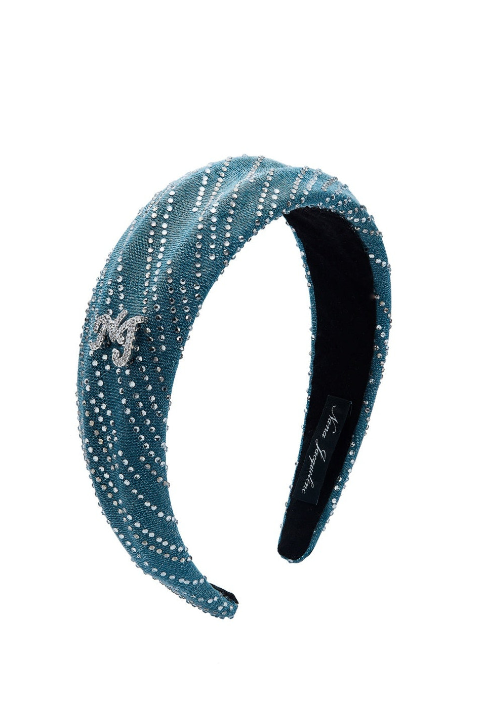 "title":"Felicia Crystal-Detail Blue Denim Headband",