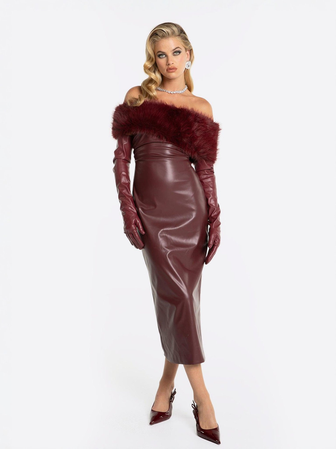 "title":"Gabrielle Fur Maxi Dress (Red)",