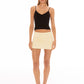 The Wendy Skirt blends retro charm with youthful energy. Designed in a soft yellow hue with classic black dots, this high-waisted polka dot skirt features a smooth, flattering silhouette and built-in shorts for both style and comfort. The A-line mini skirt shape naturally enhances the legs, offering a playful yet elegant finish.