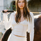 Lapel: Decorative lapel lace adds elegance to this feminine cropped top.