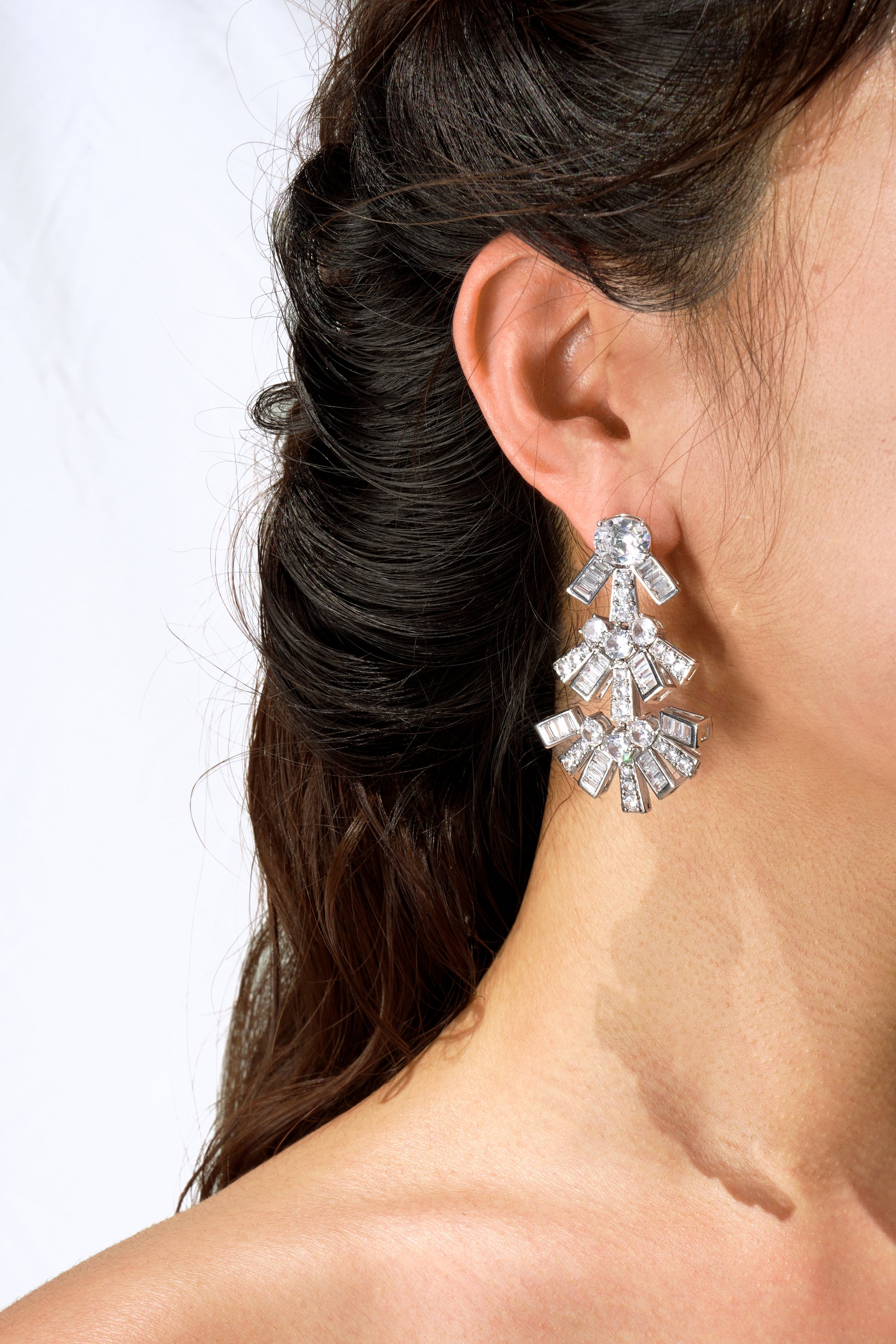The Claira Earrings are a part of our light series, which signifies the bright, shining moments in life. These gorgeous, elegant earrings feature a water-droplet shaped main stone, and then a three-layer design that adds depth and dimension. They offer a statement moment that frames your shape face perfectly.