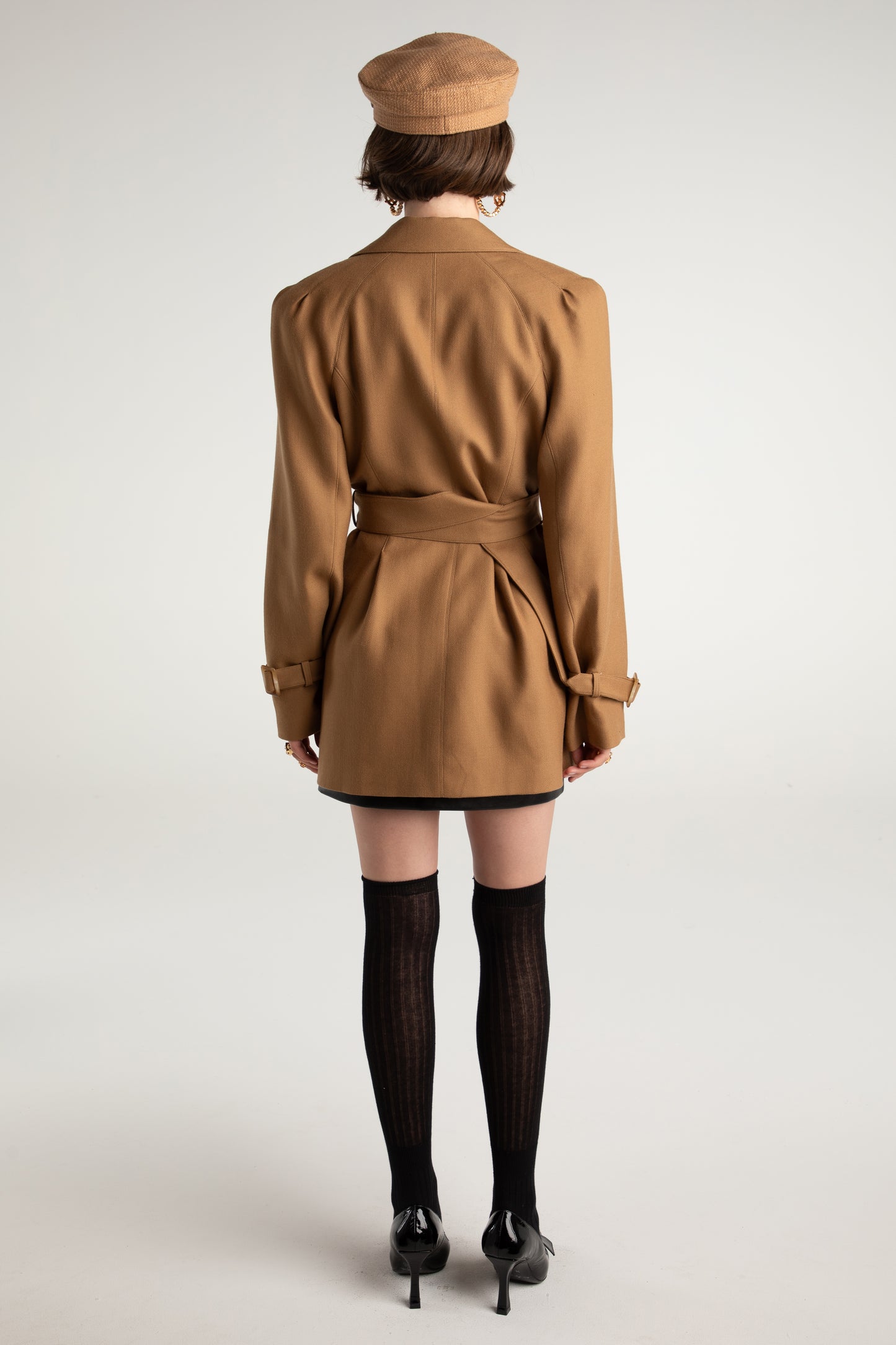 Spare yourself from weather of all kinds in the Gracie Windbreaker Jacket. This stylish piece allows you to look good on all occasions. It contains a soft wool fabric that gives it a cozy feel, but also has a clear waist shape to give it style.