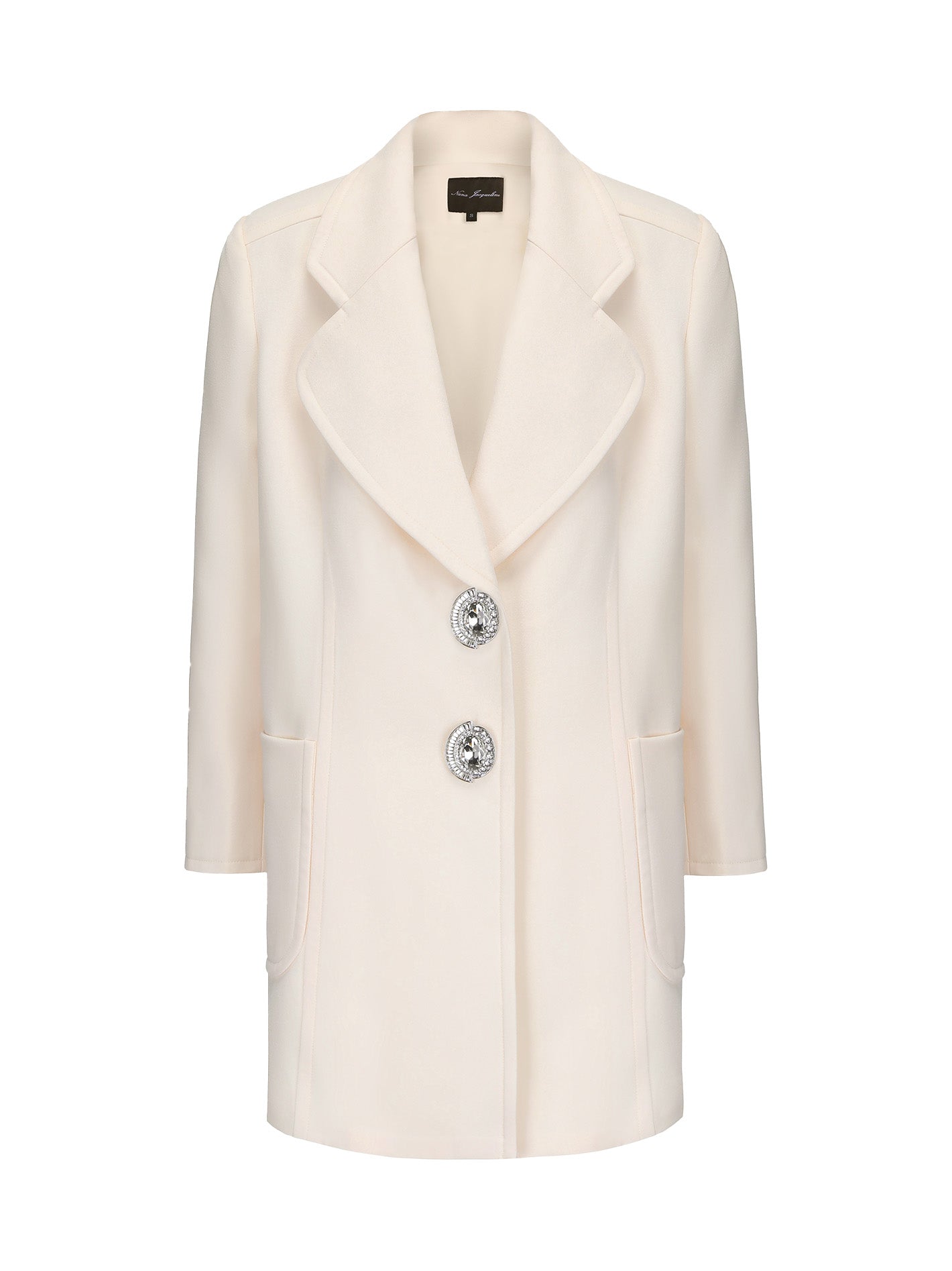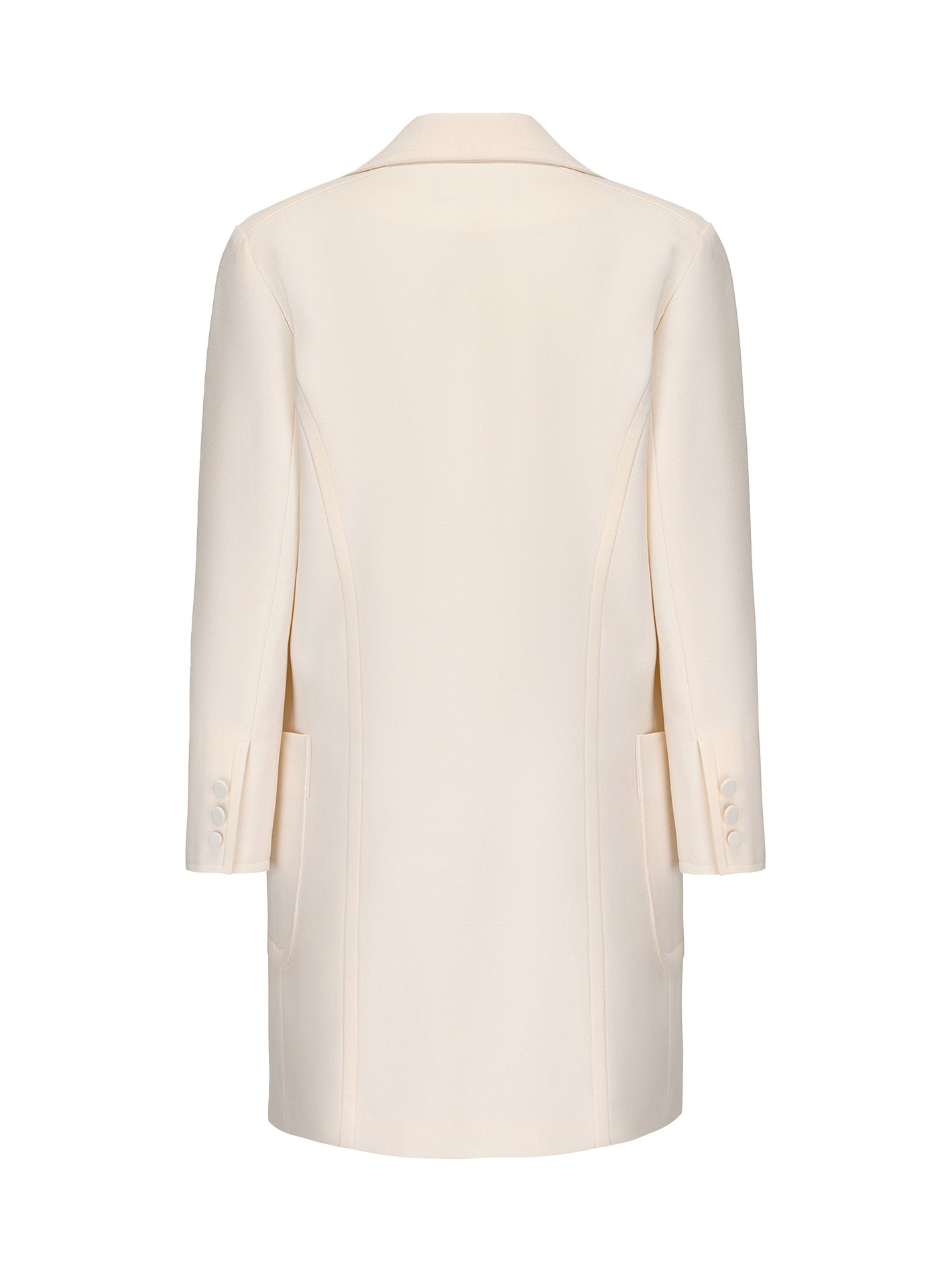 The Nadine Coat features a sophisticated H-shaped lapel and mid-length design, crafted from high-weight hemp fabric that offers a crisp, textured finish. The open-stitched detailing enhances the coat's three-dimensional effect, giving it a structured and refined look. Two large "Colosseum" diamond buttons adorn the placket, adding a touch of luxury and elegance. With its simple yet stylish design, the Nadine Coat seamlessly blends sophistication with modern fashion, making it a versatile choice for various occasions.