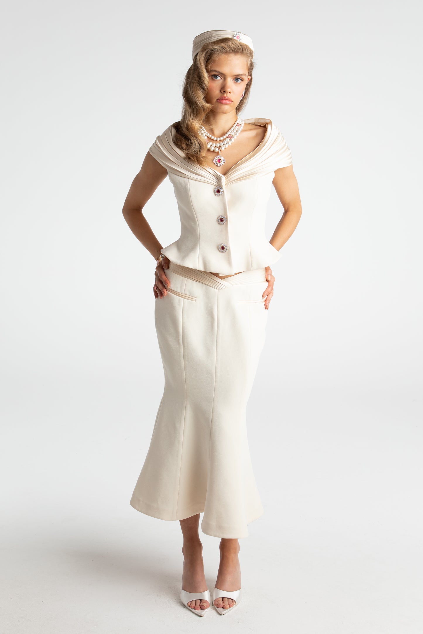 Feel effortlessly feminine in the Belle Satin Top. This gorgeous, off-the-shoulder number is designed to show off your flattering neckline and figure. It features exquisite hemming detail and custom diamond buckles to give it an elegant and elevated overall look. Pair it with the Belle Satin Skirt to complete the masterpiece.