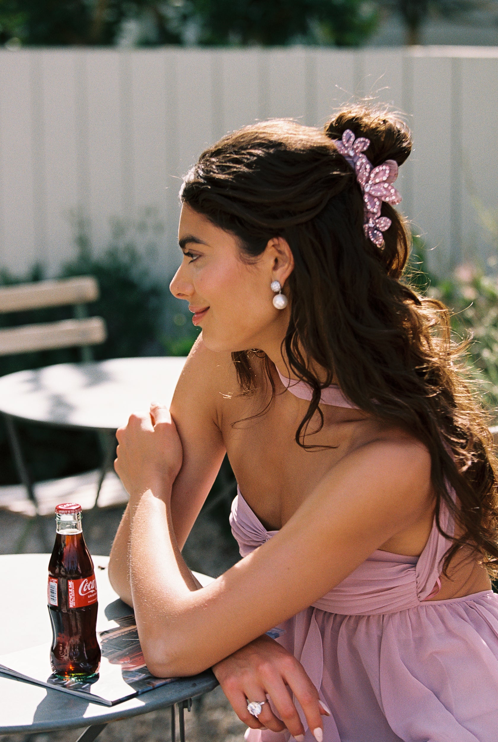 Each turn of the head, each flick of the hair, radiates a unique charm, much like the bougainvillea in our secret garden, quietly blooming under the night sky. Embrace the Ariella hair clip and let its pure beauty and boundless fantasy become a part of your own story.