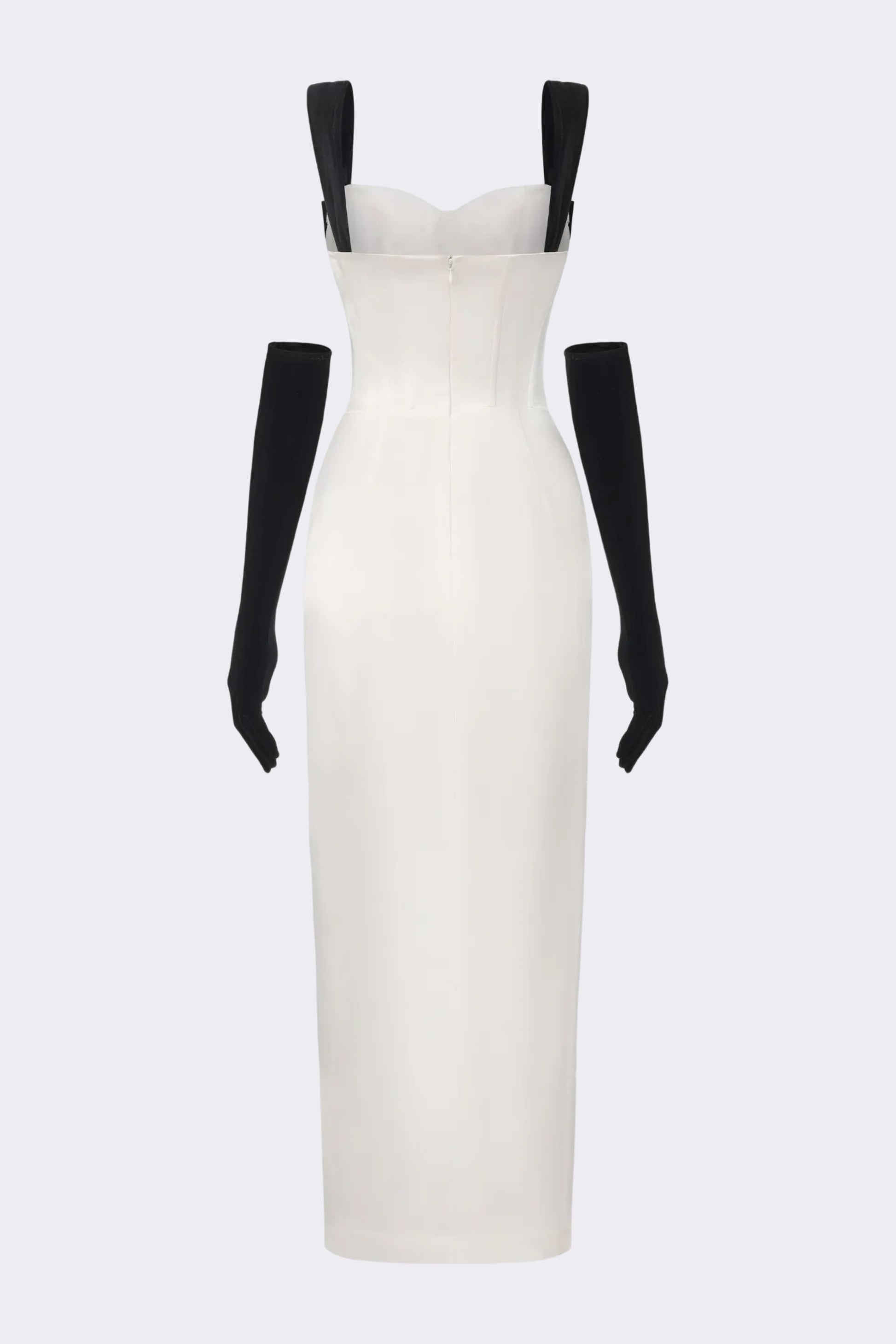 The Grace Bow Dress captures the glamour of a New York evening, blending satin’s soft shimmer with velvet’s rich depth. Designed with a sculpted fishbone waist and a swaying neckline, this satin bow dress frames the body with elegance while the flowing pleats and subtle slit create a sense of graceful movement. Complete with matching velvet gloves, this satin maxi dress is a vision of refined femininity.