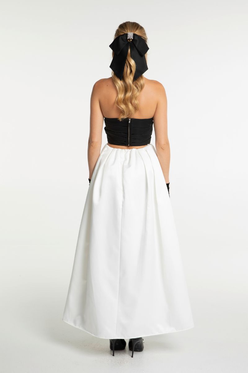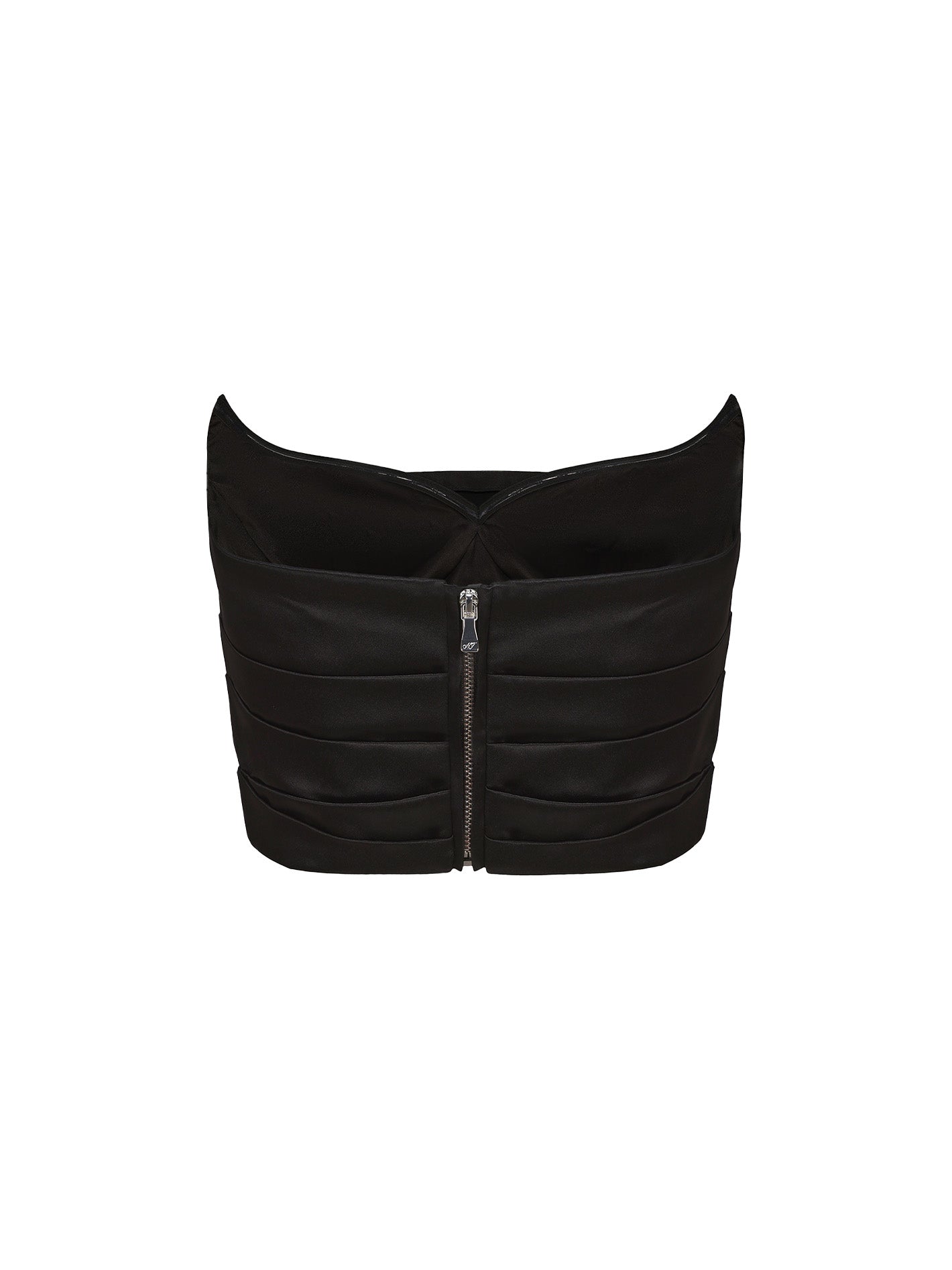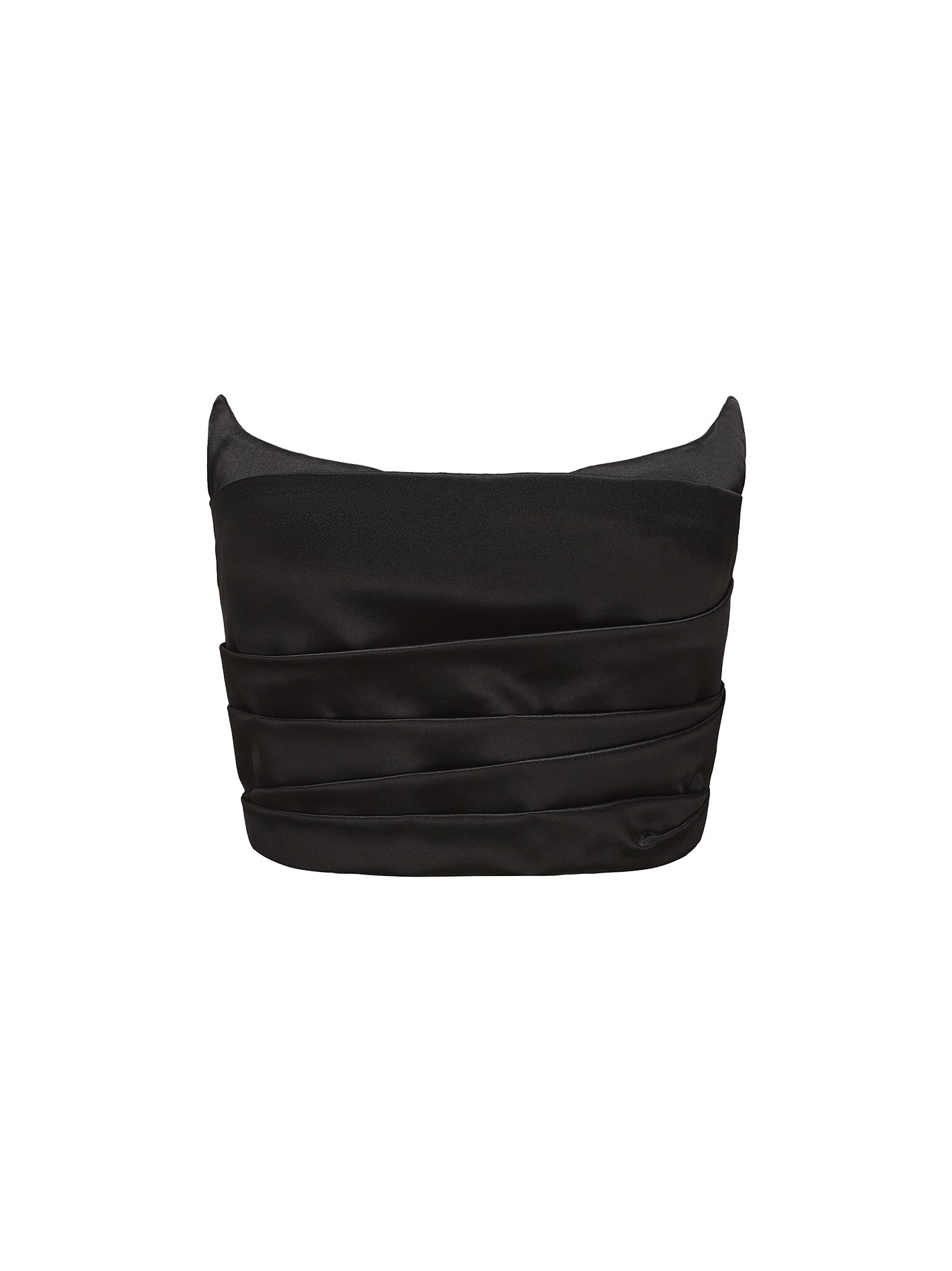 The Sydney Top is a stunning tube design that captures the essence of "modern retro sexy." Crafted from shiny, crisp satin fabric, it exudes high-end elegance. The playful cat ear neckline adds a touch of femininity, seamlessly blending sexiness with sophistication. Pleating at the front introduces dynamic layering, creating a soft and natural chest line. A stylish metal zipper at the back, featuring a custom NJ puller, ensures easy wear while enhancing its fashionable appeal. The top's cropped length accentuates the waist, delivering a tall, alluring silhouette.