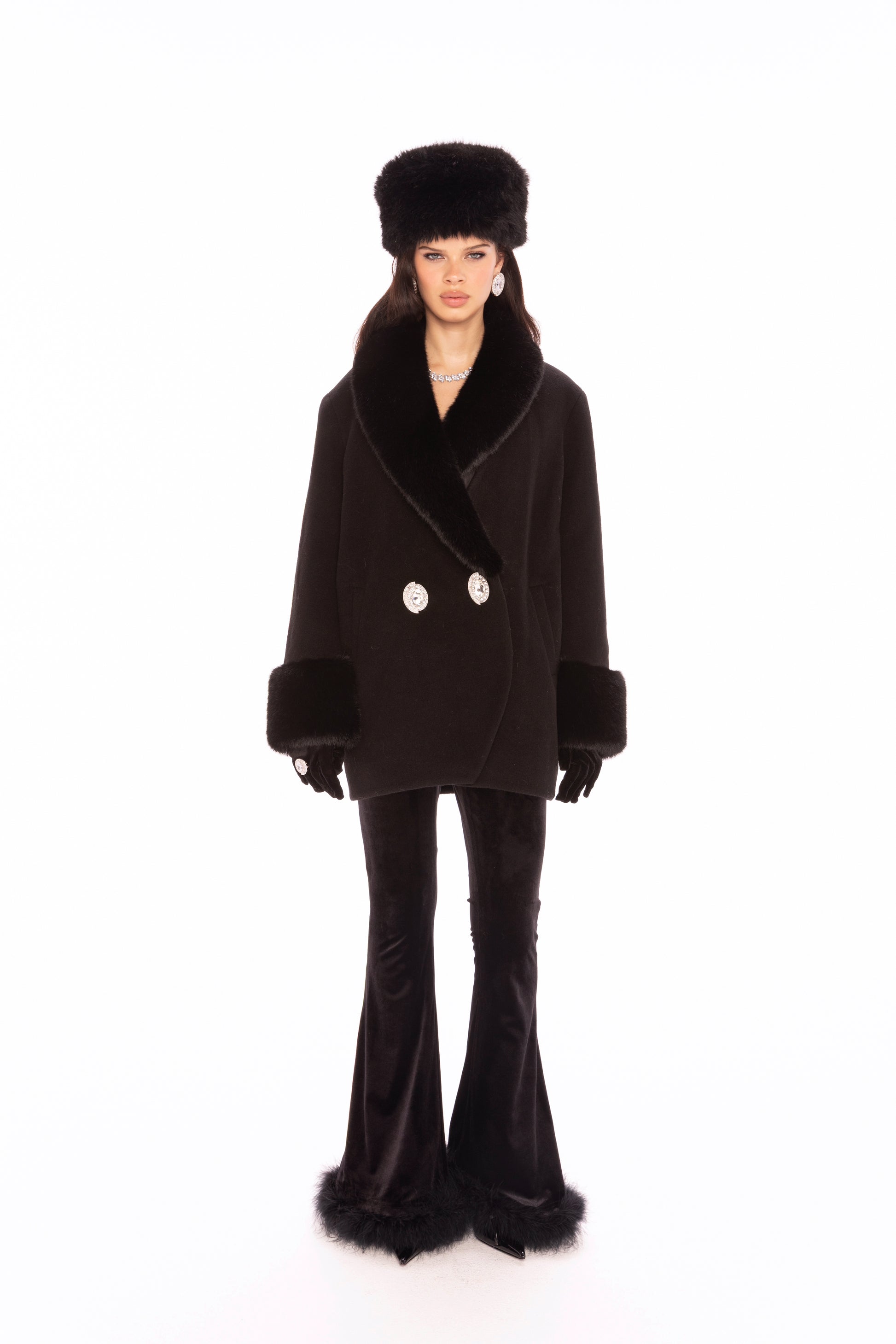Althea Faux Fur Collar Cocoon Coat (Black)