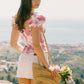 The Esmeralda Top is a romantic spring top that feels like a garden breeze. Featuring NJ’s exclusive print in soft, vivid tones, this smocked puff sleeve top brings charm and detail to everyday dressing. The pleats along the chest and waist create a flattering shape and subtle texture, while the hidden eyelash lace at the neckline adds a delicate, dreamy touch. Flattering puff sleeves and a lightly flared hem give the piece a sweet silhouette.
