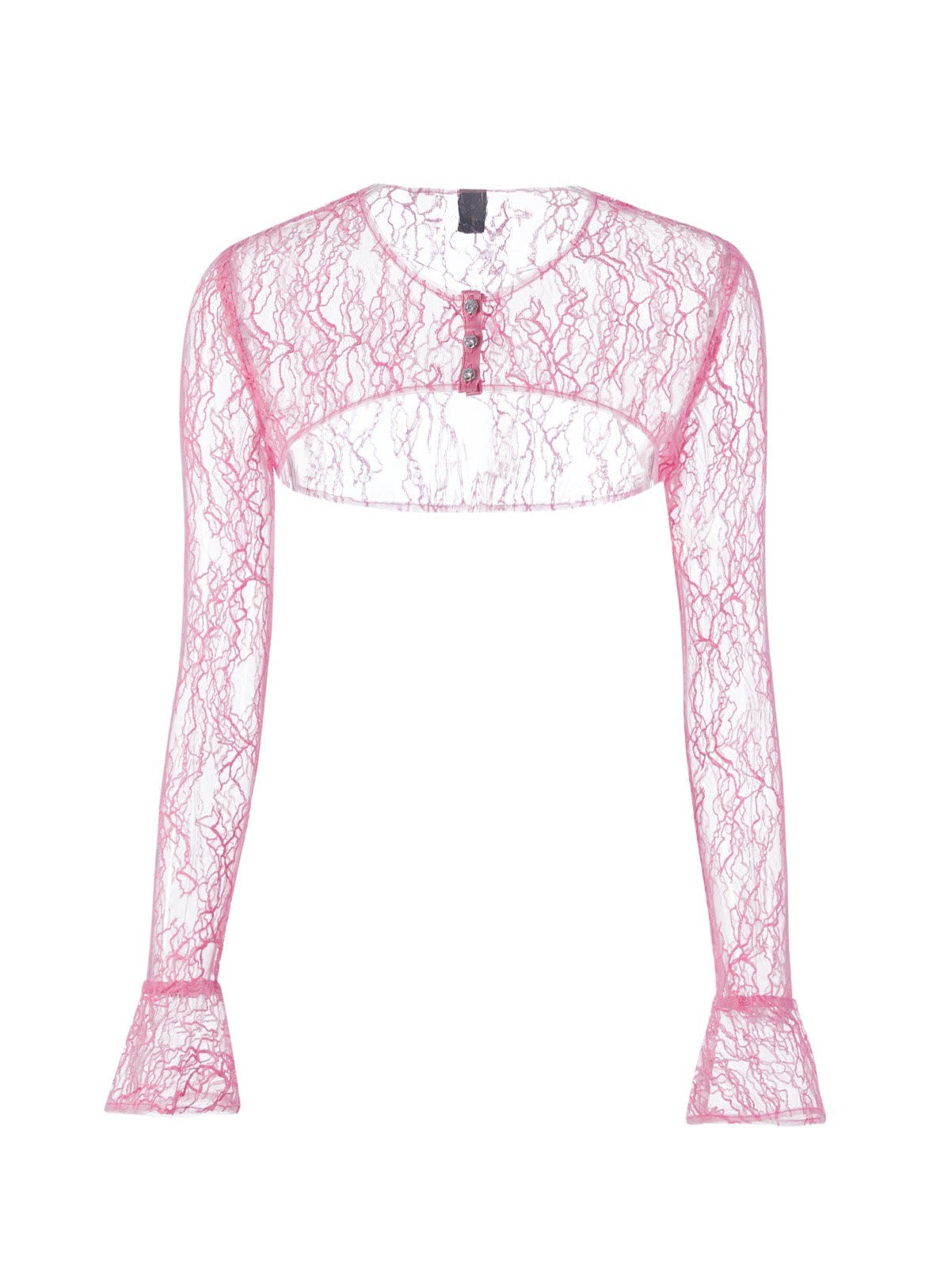 This beautiful lace cardigan adds a a sexy and playful touch to your look. Featuring a short flocked material it is comfortable and soft to the touch, the cuffs are designed with a slight flare, and the placket is a zircon round diamond button giving it elegant vibes.