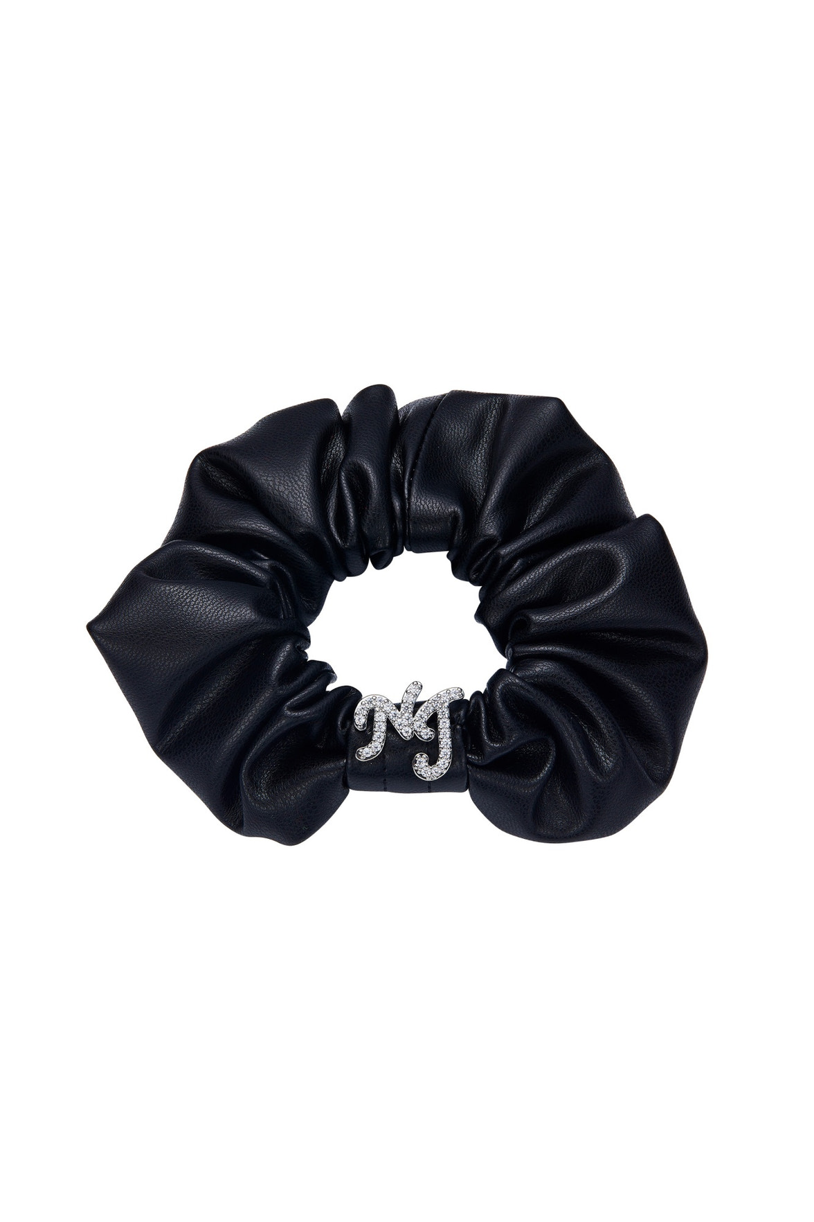 "title":"Aimee Leather Crystal Detail Black Scrunchie",