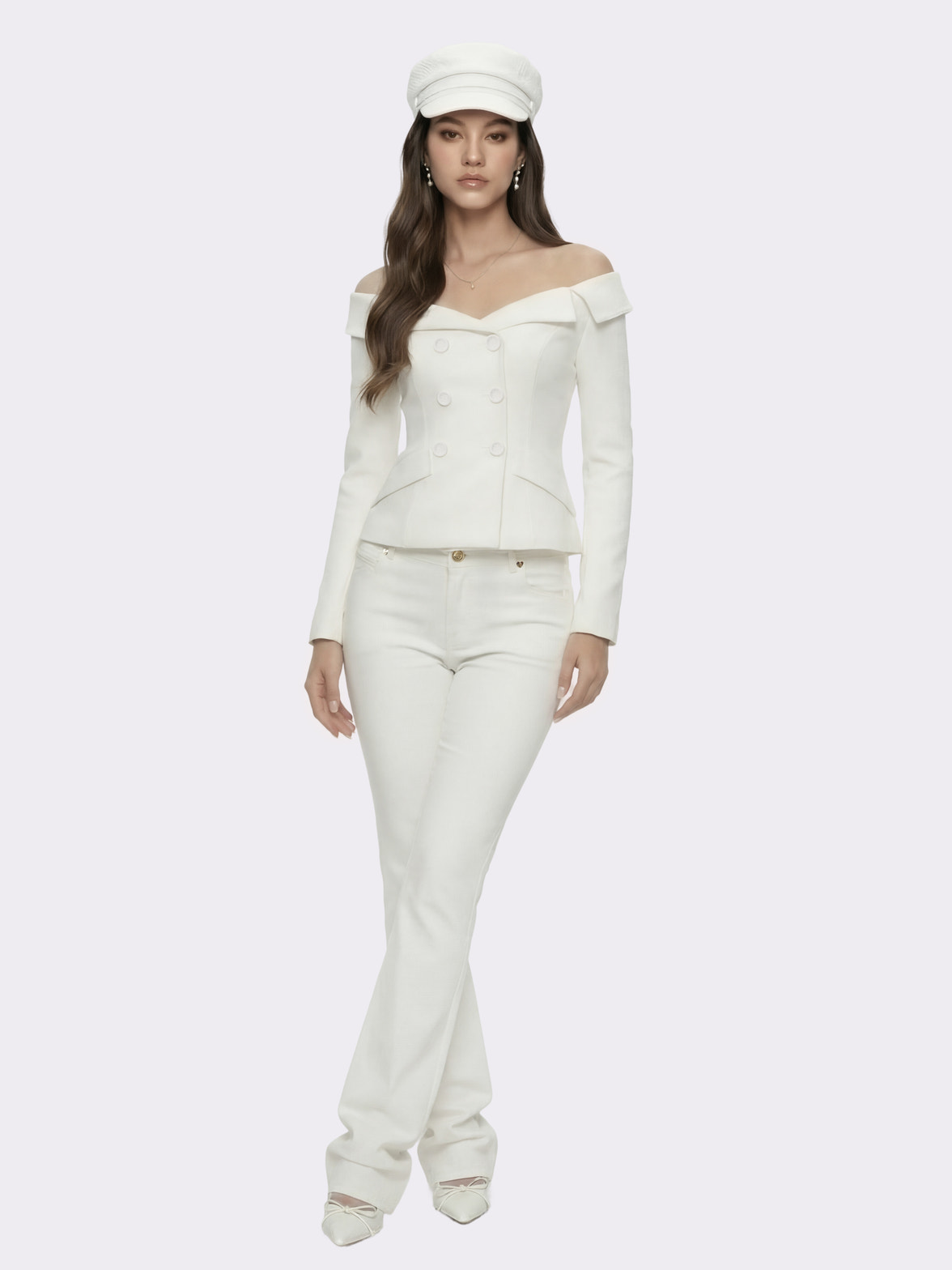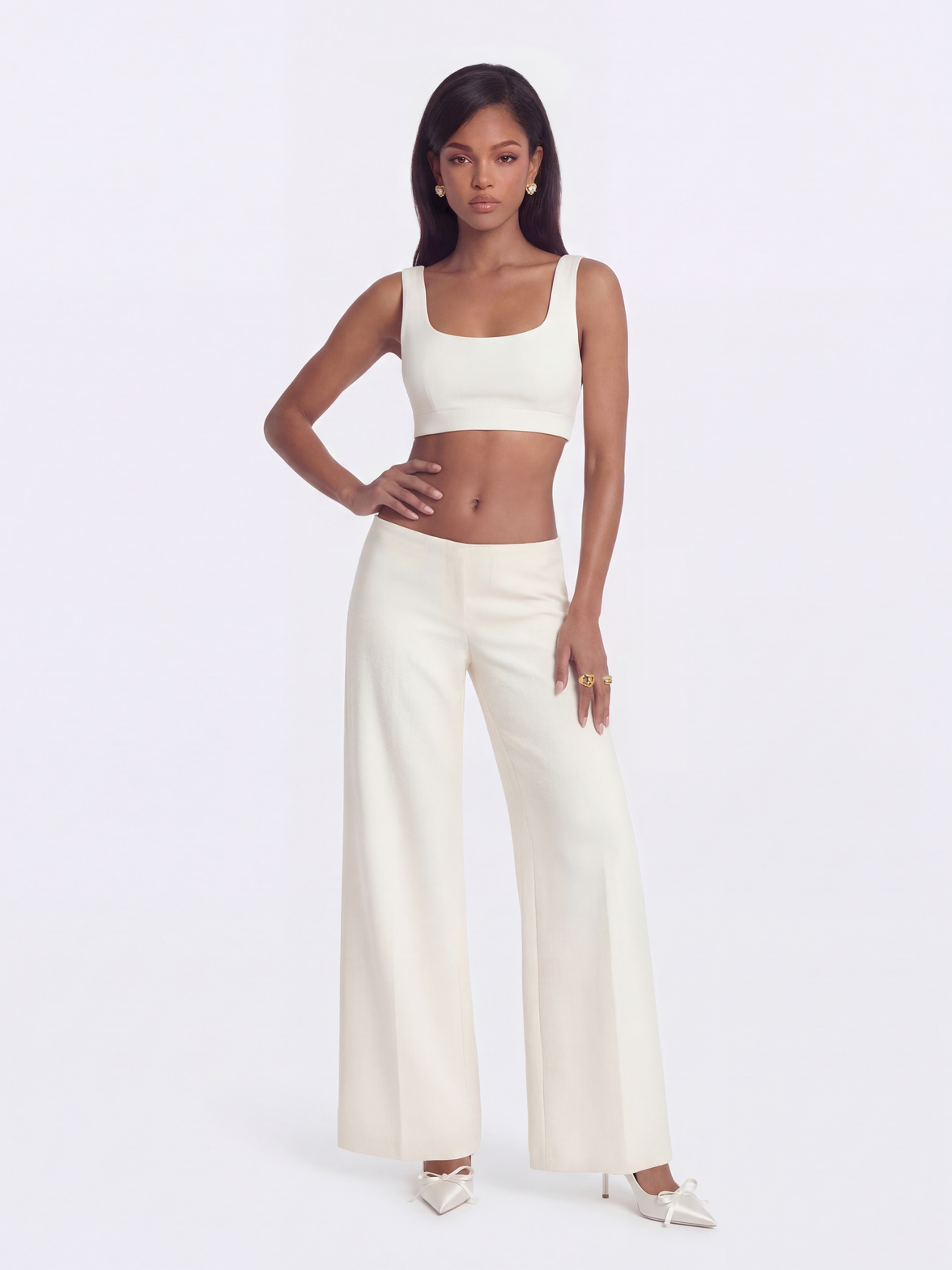 "title":"Juliette Textured Wide-Leg White Tailored Pants",