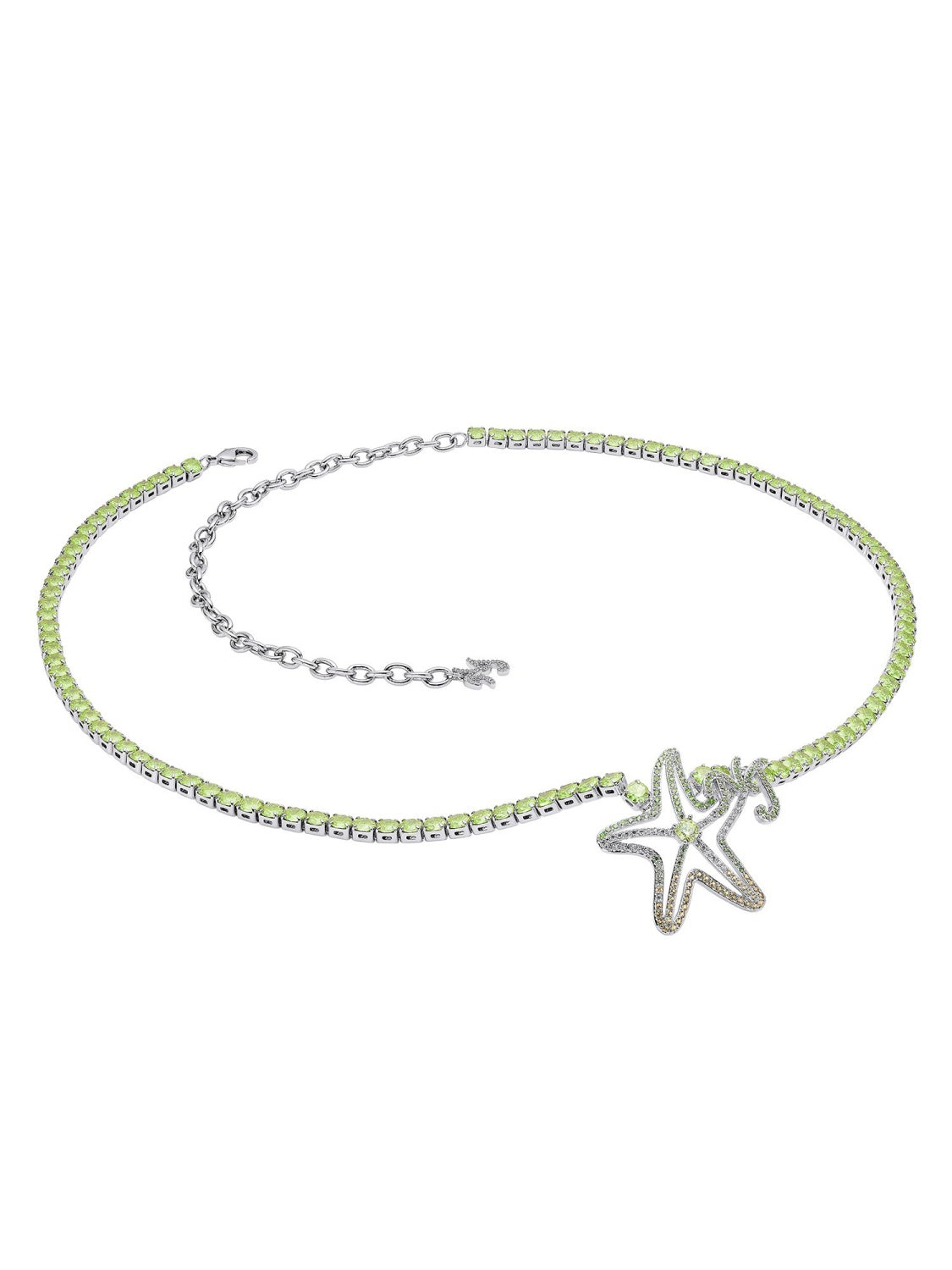 This sexy waist chain features a starfish inspired statement star and green diamonds. Be prepared to make a stunning statement.