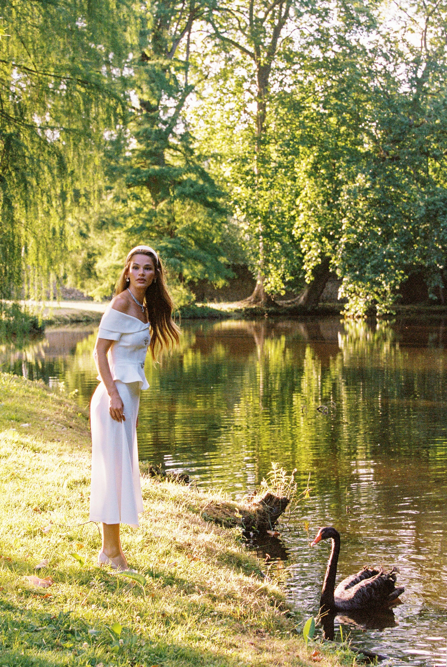 Design: A romantic blend of classic tailoring and couture detailing, finished with an inner diamond-print brand lining.