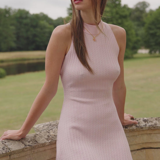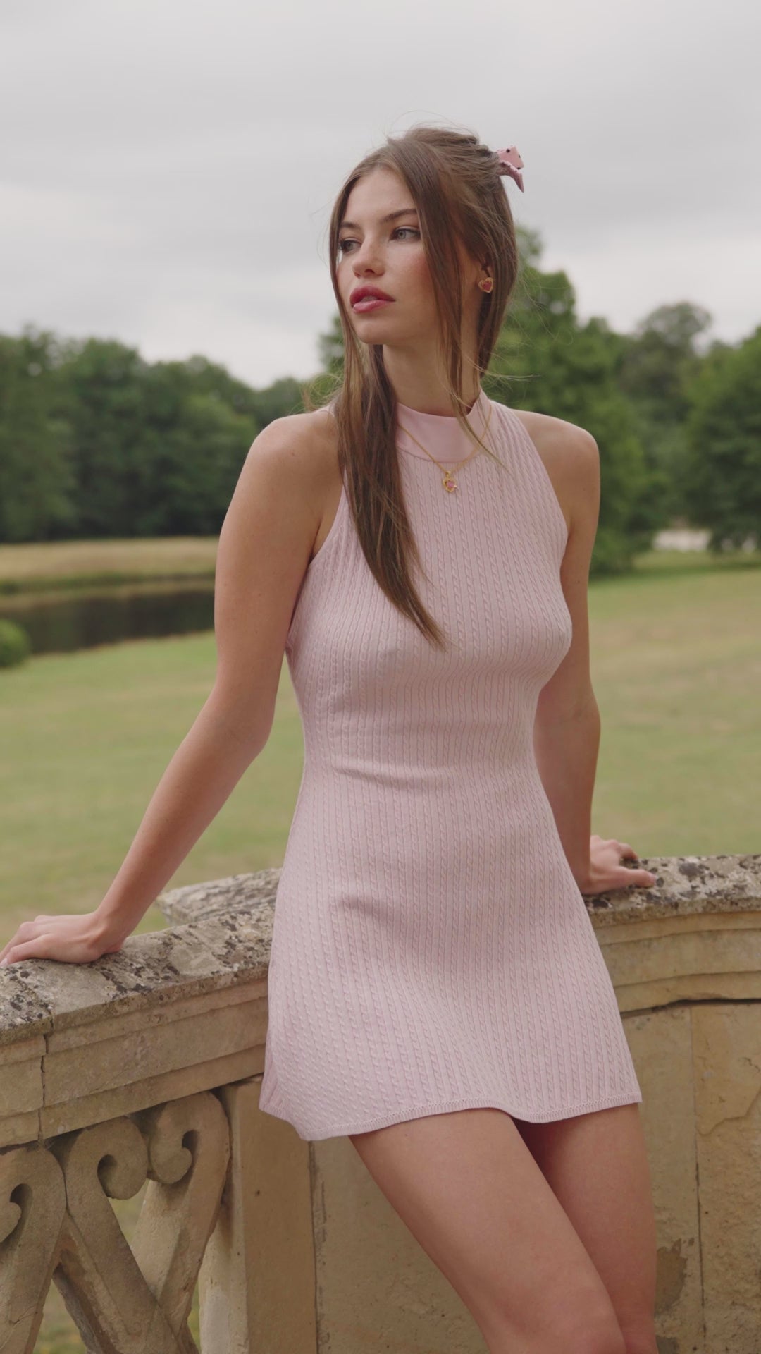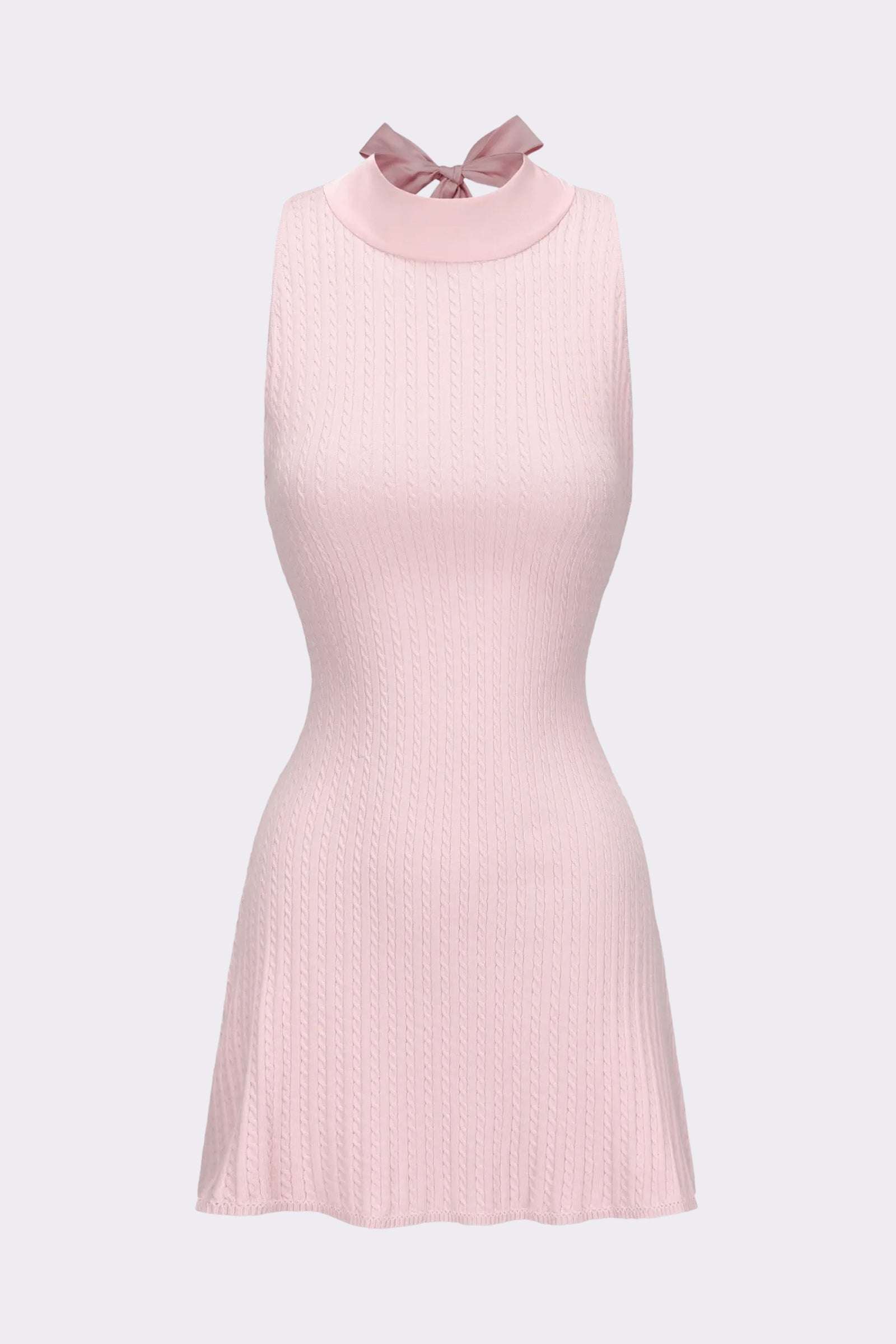 The Carrie Dress captures romantic sweetness in every detail. Made from high-twist core-spun yarn, this fitted knit dress flatters with a twisted rib texture and flared hem. A glossy satin ribbon wraps from front to back, tying into a delicate bow above a heart-shaped cutout back, making this backless knit dress a charming statement from every angle.