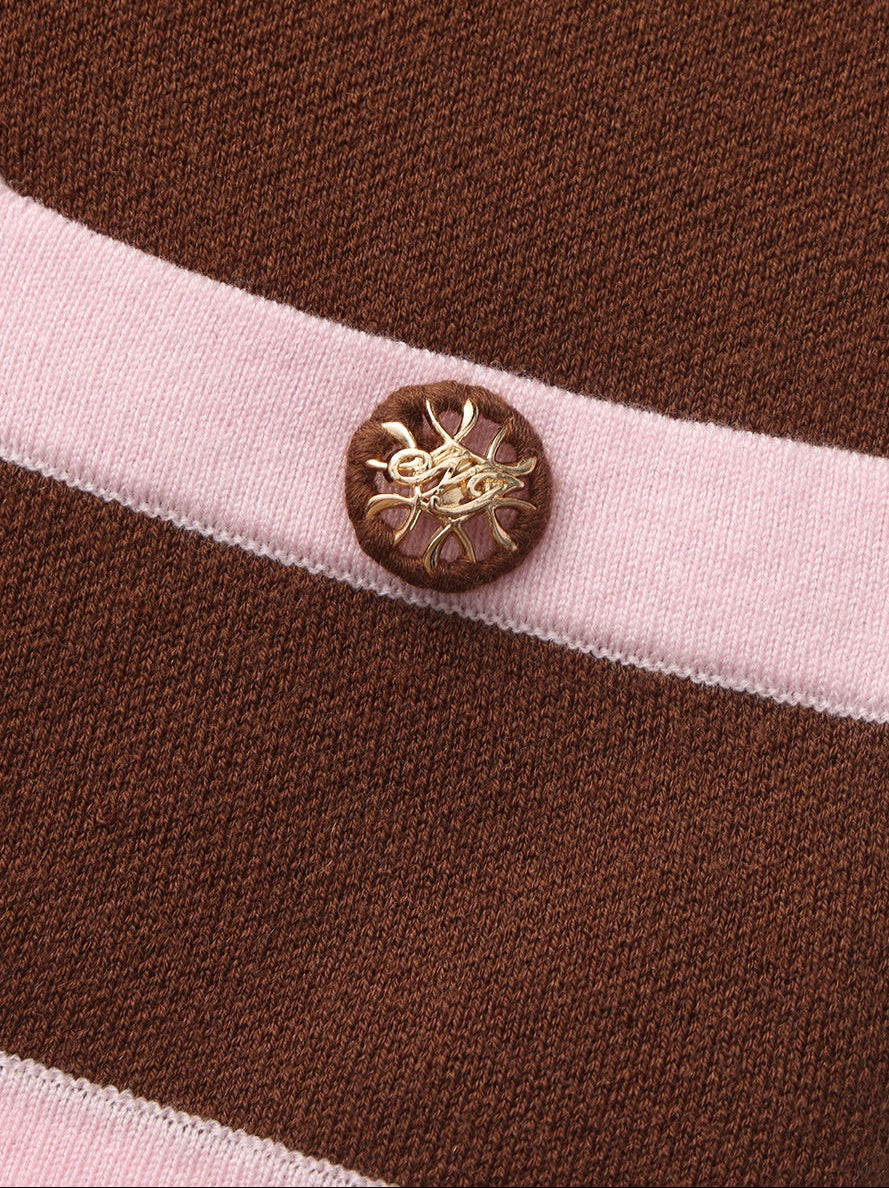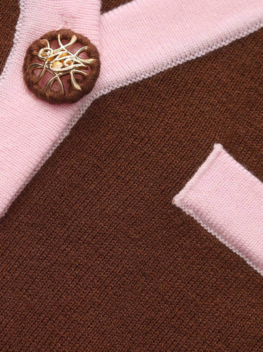 Lisette Contrast-Trim Brown Knit Three-Piece Set