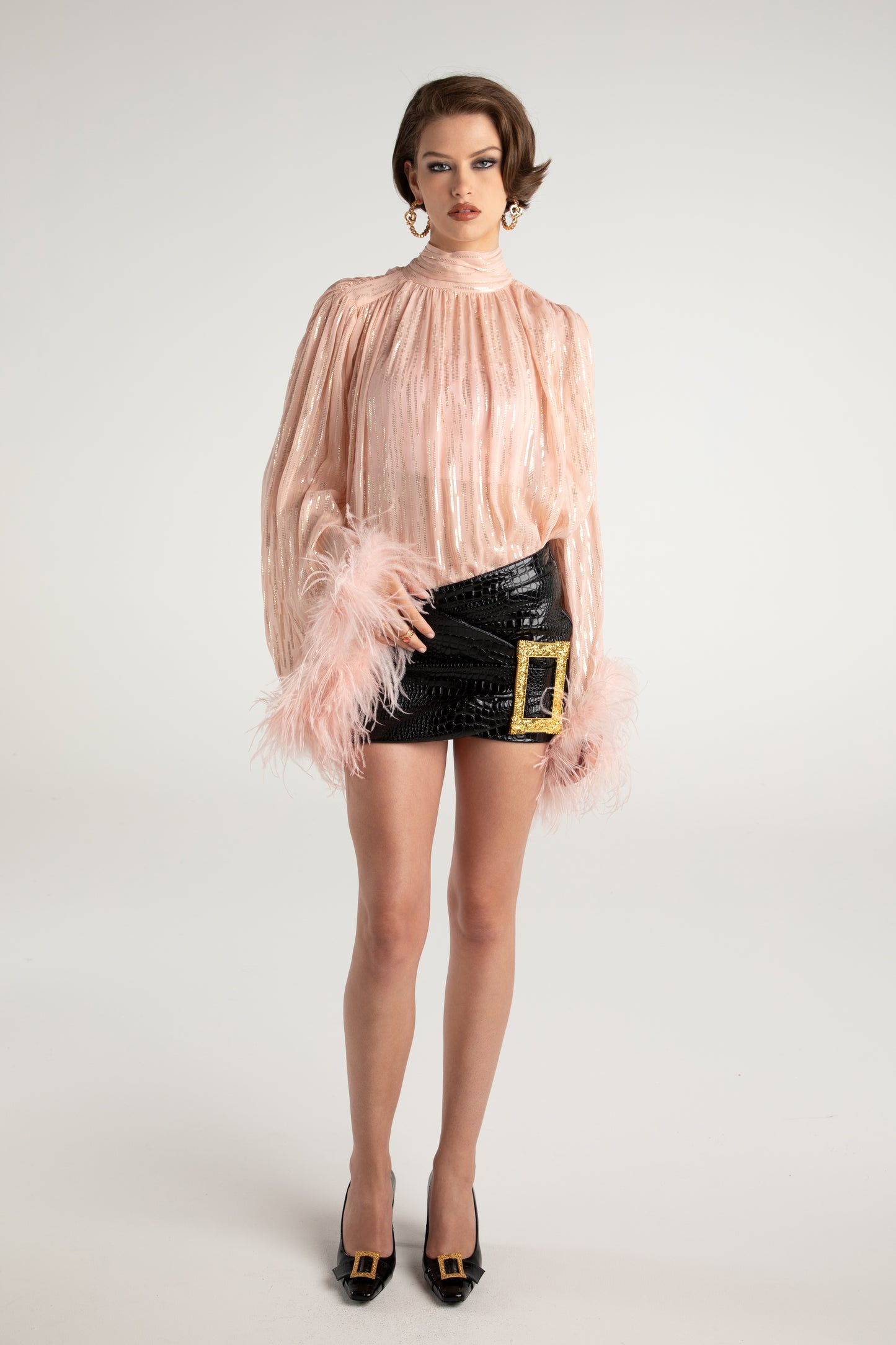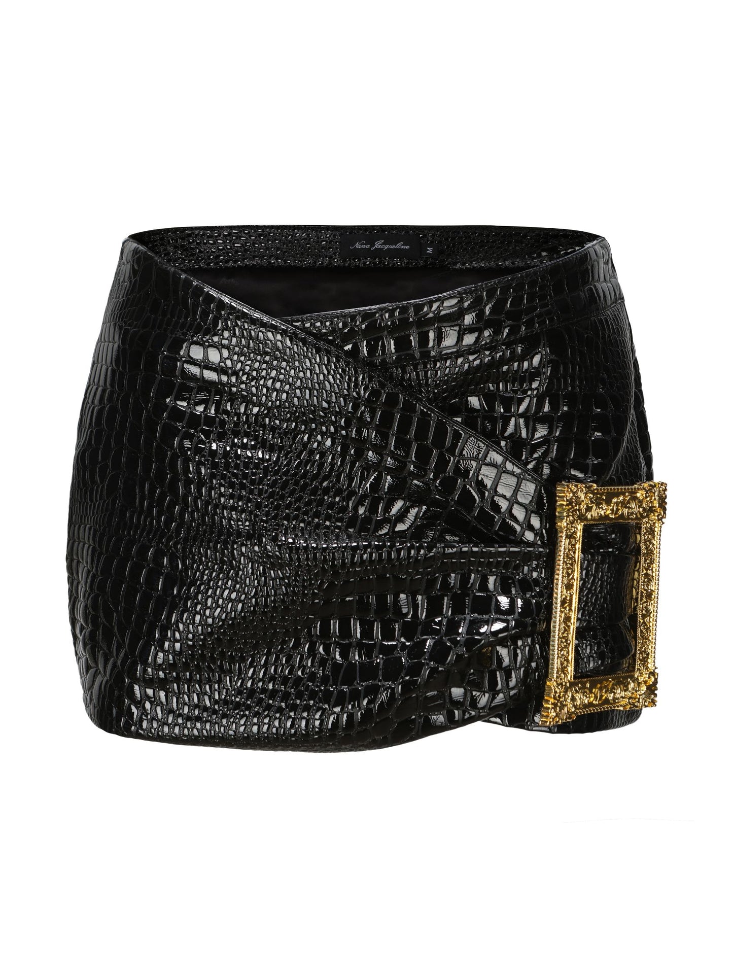 Turn a mini night into a whole mood with the Miranda Leather Mini Skirt. This sexy little number can be perfectly paired with sweaters, tops, and coats of all kinds. The crocodile leather fabric is beautifully designed and paired with the large golden decorative buckle. Grab it in every color for an easy, understated look.