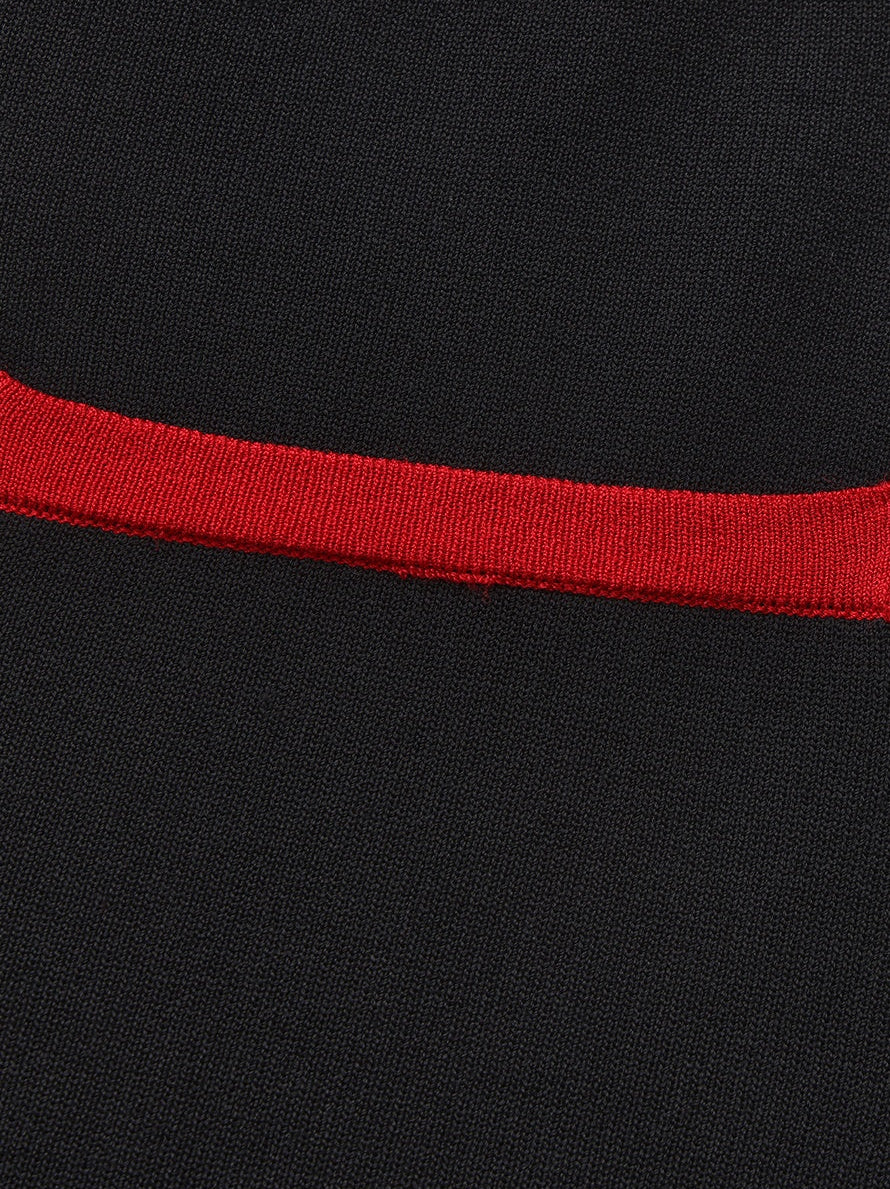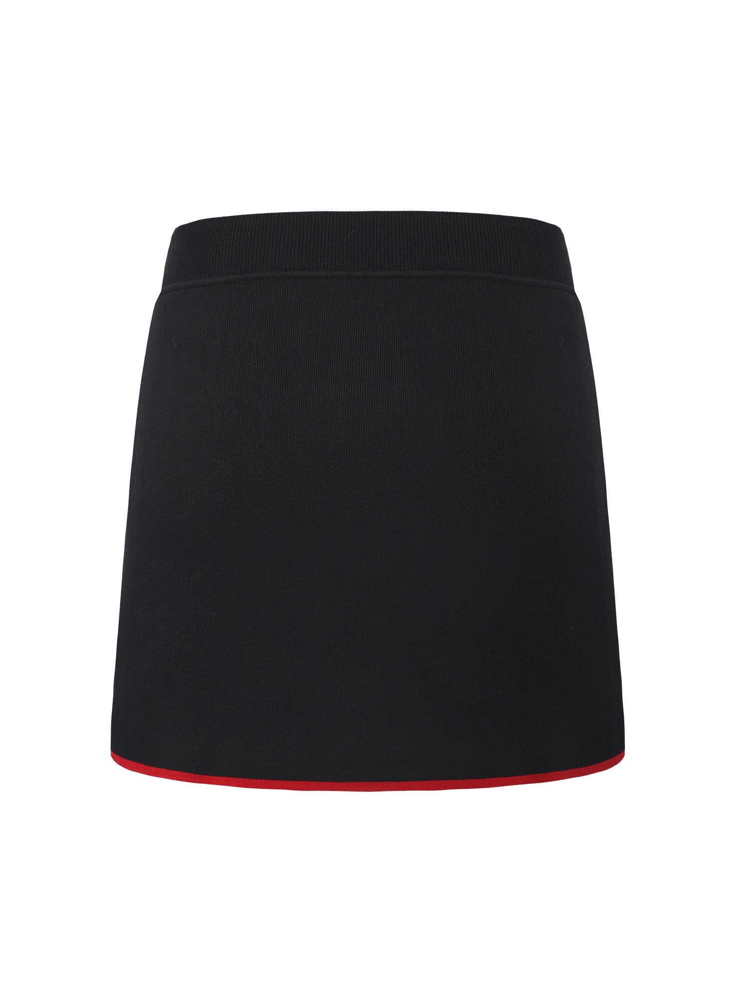 The Wilhelmina Skirt in black with red contrast leans graphic and confident. Sharp pocket trim ensures the silhouette reads with precision, while the skirt maintains a smooth, uninterrupted line from the back. It’s a piece that feels bold without being loud.