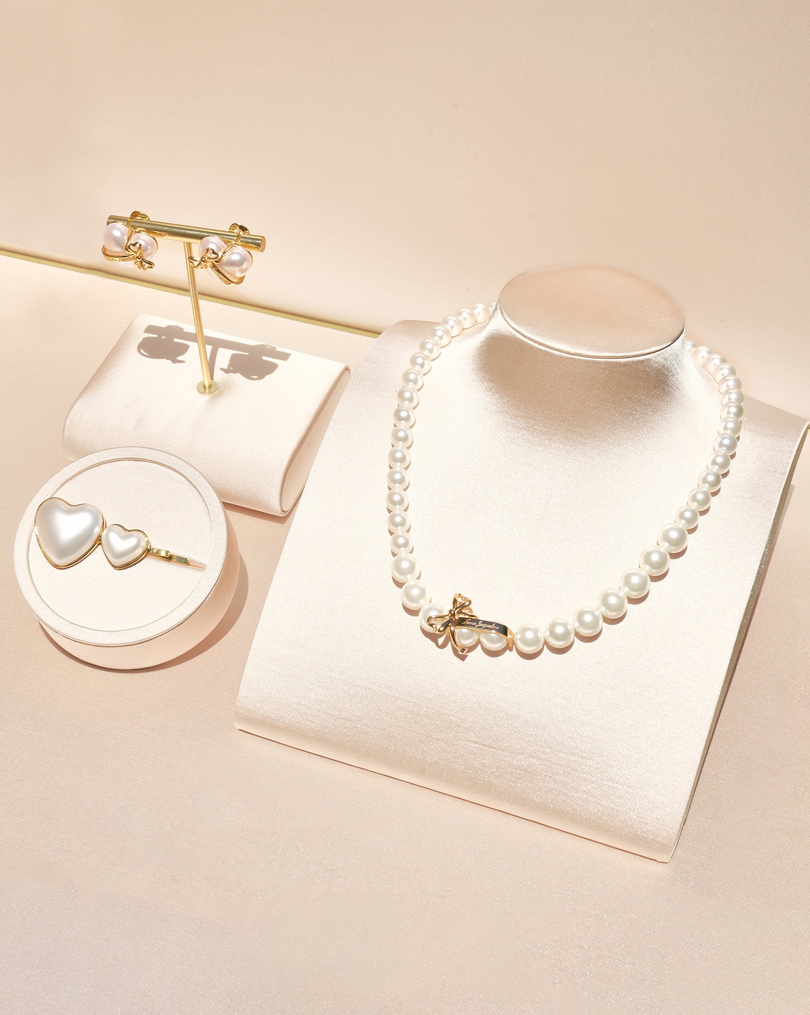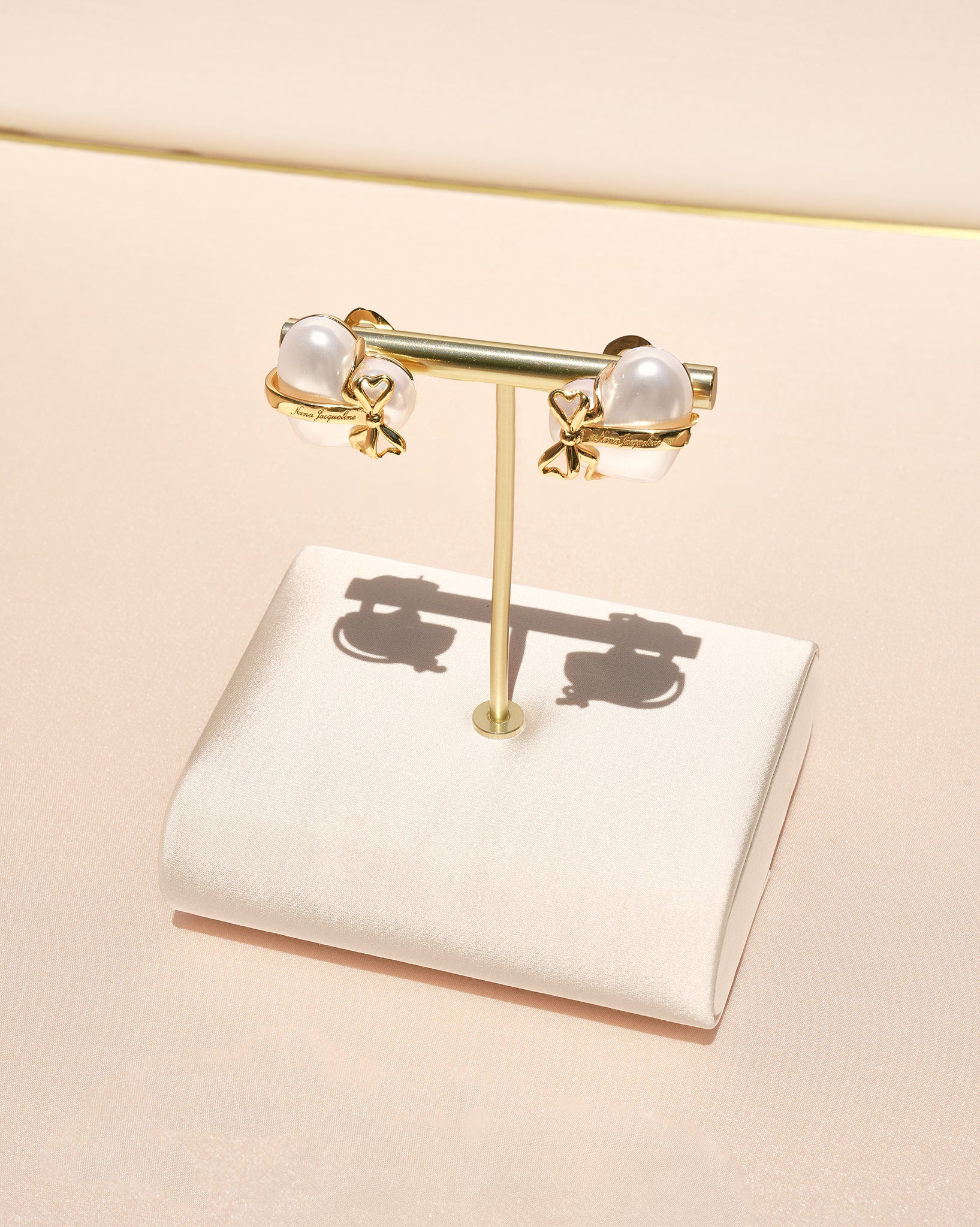 Add a romantic sparkle to your look with the Amor Earrings. These&nbsp;white heart shaped earrings feature glossy faux pearl studs wrapped in an elegant gold bow detail, crafted from gold-plated brass. Designed to elevate both day and evening outfits, these clip on earrings are a sweet, polished finishing touch to any jewelry look.