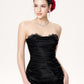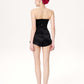 Fit: Strapless black jumpsuit with structured boning and a fitted waist for a refined silhouette.
