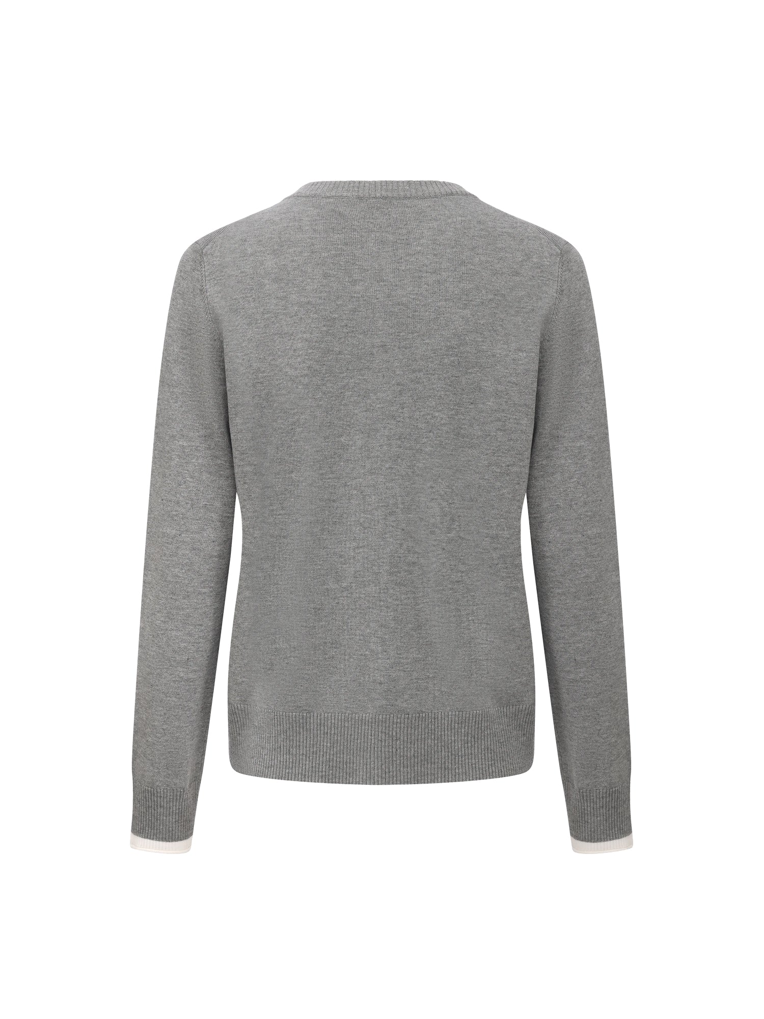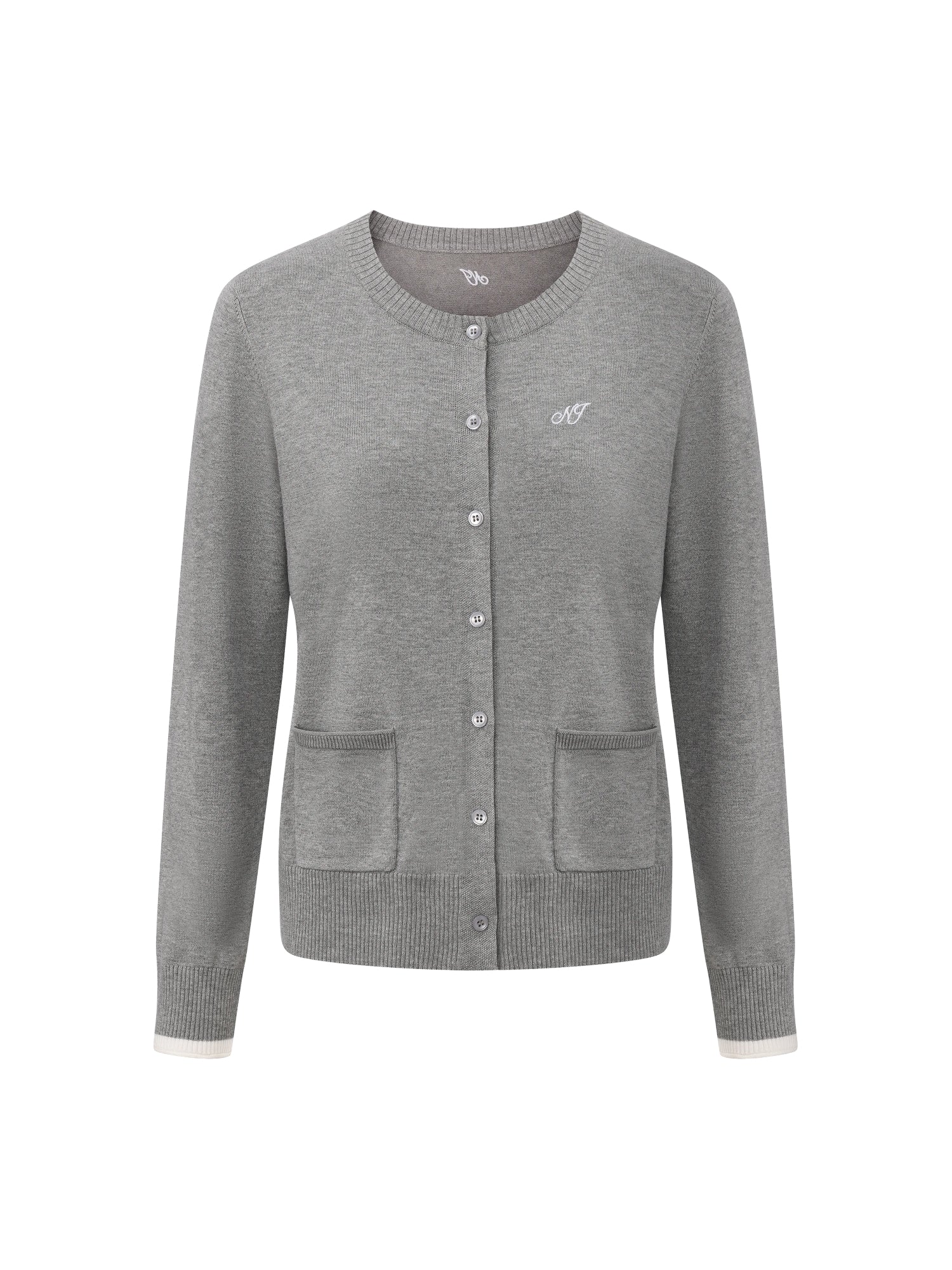 We love the Mia for its proportion and finish. A longer, relaxed cut establishes ease, while the vertical button placket adds rhythm and visual clarity. Rolled edges at the pockets and cuffs soften the line, keeping the cardigan composed yet unfussy.