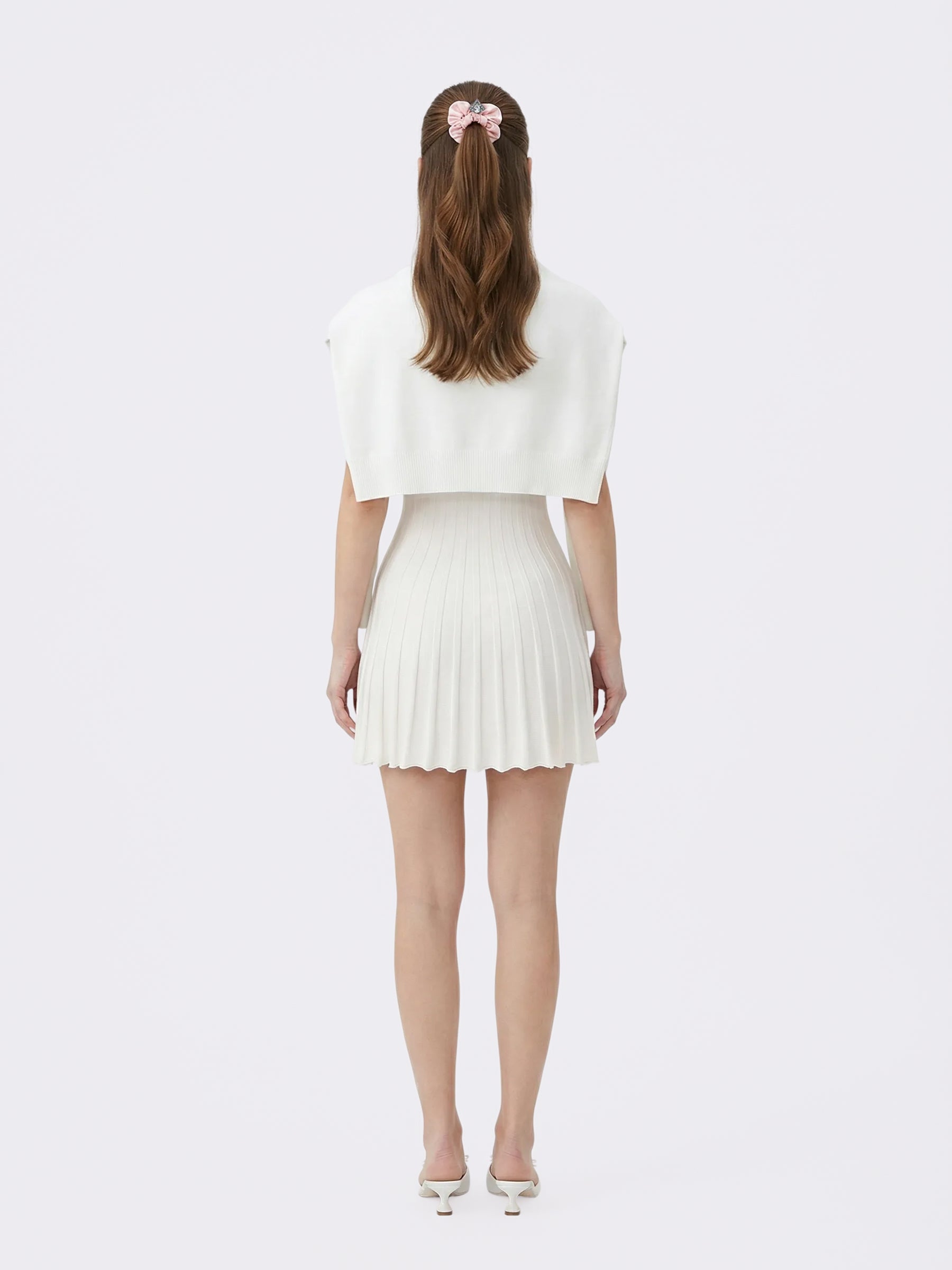 Ava Reverse Halter White Knit Flared Dress