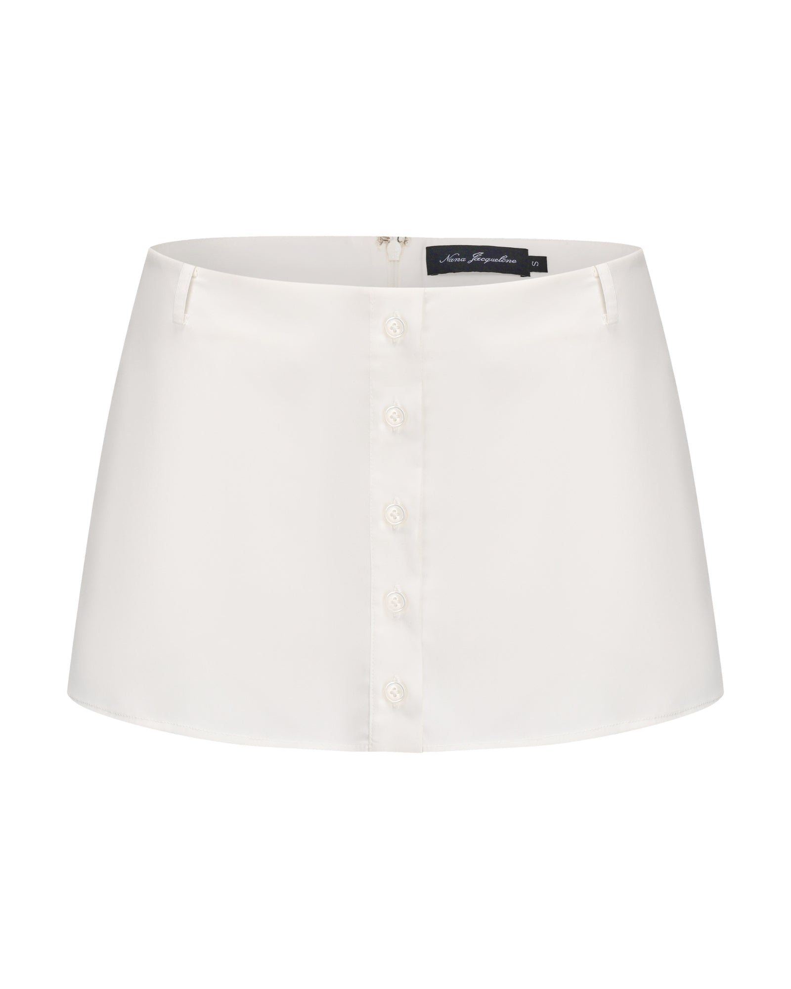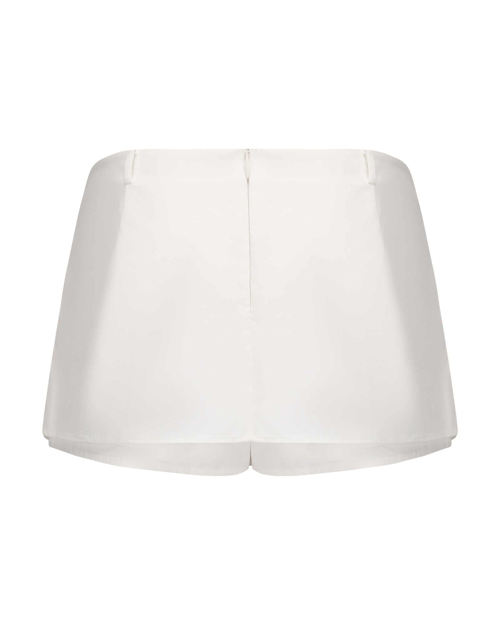 The Bridget Skirt offer the perfect blend of playful charm and tailored polish. Designed in a crisp white hue, this feminine skort features a front placket detail that mimics the look of a classic mini skirt, while cleverly concealing shorts underneath for all-day ease and confidence. A softly flared A-line silhouette flatters the figure, making it a versatile staple for both daytime outings and elevated edits.