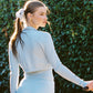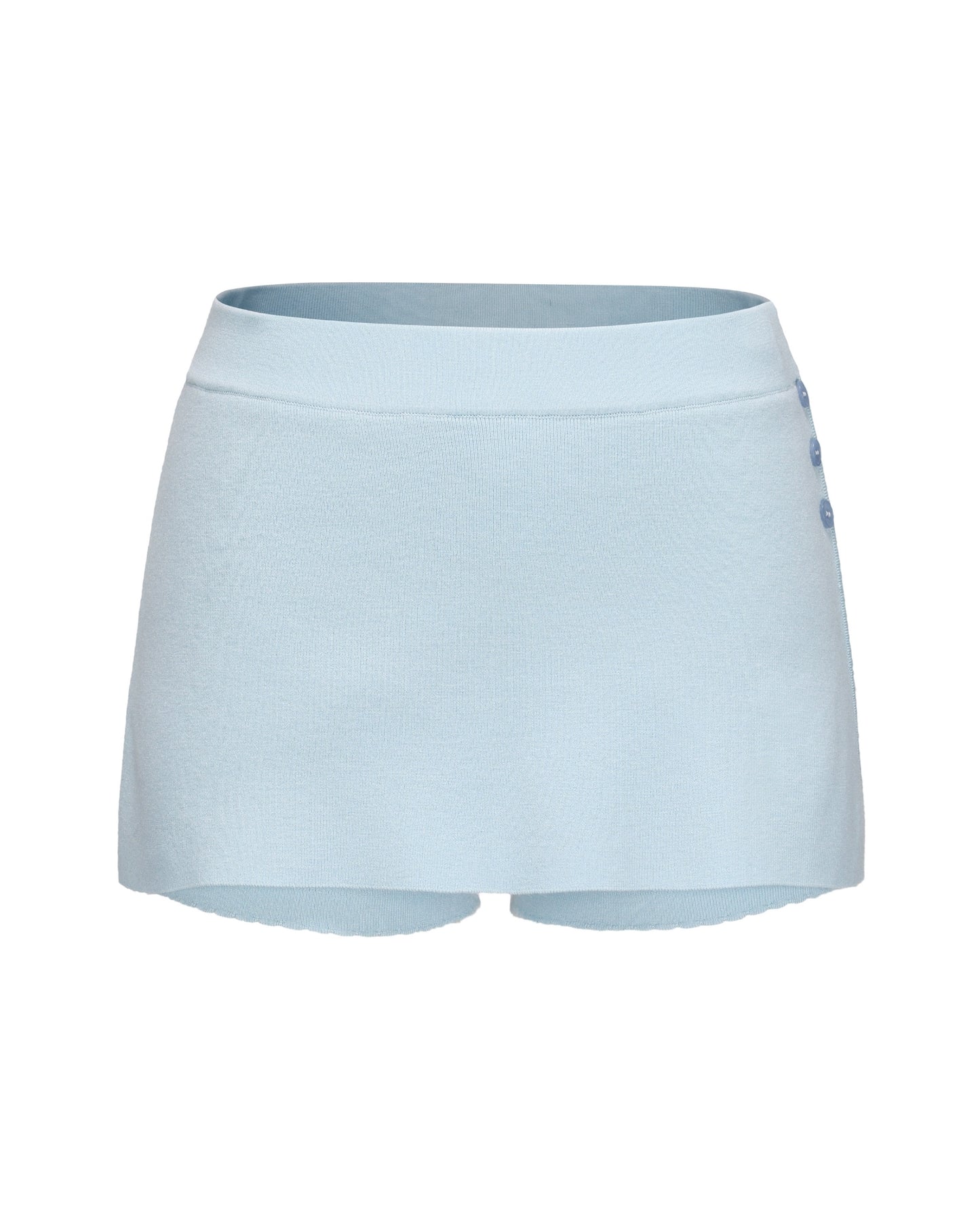 The Carrie Shorts bring together dreamy softness and thoughtful design. Made from high-twist core-spun yarn, these knitted shorts with skirt overlay offer a lightweight, body-hugging fit with a petal-like silhouette that moves with grace. Finished with delicate lace trim and tonal buttons, they capture a playful yet refined femininity.