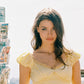The Elara Dress is crafted from pearlescent satin that glows softly, like morning light brushing against petals. Its gentle luster catches the eye, while the voluminous puff sleeves and pleated bodice mirror the delicate textures found in nature. Fine pleats ripple across the chest and sleeves, adding graceful structure, as eyelash lace traces the neckline with a touch of ethereal romance. With each step, the softly flared skirt moves like a whispered fairytale.