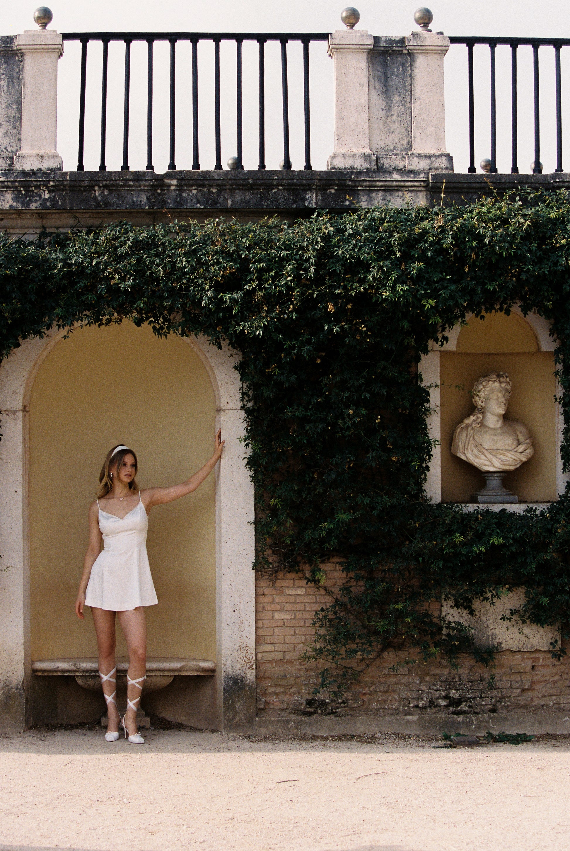 White slip dress on a white background: