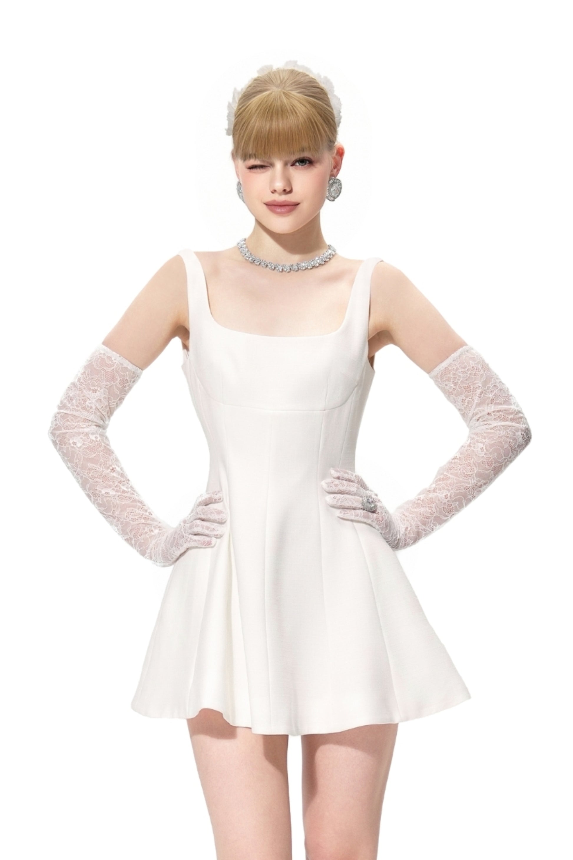 The Marianne Dress combines classic design with comfort. The square and round neck adds charm, while the waist-cinching fit flatters the figure. The multi-piece umbrella skirt provides volume and movement, perfect for both formal and casual occasions.