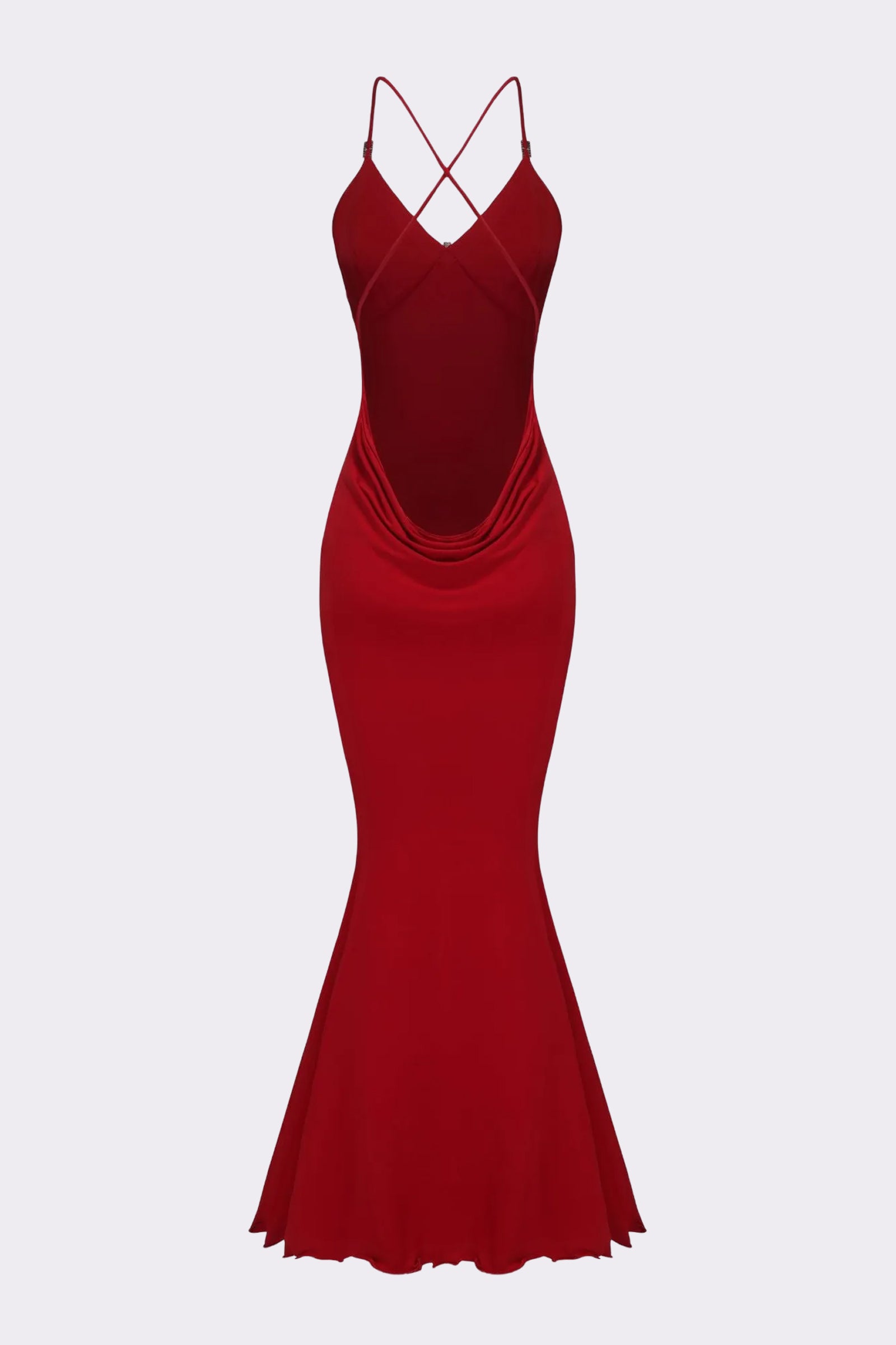 The Seraphina Dress offers a perfect blend of comfort and elegance, crafted from soft, elastic fabric. It features customized diamond ornaments on the chest, stylish strap buckles, and a seductive open-back design. The fishtail skirt creates a romantic, flowing effect with every step.