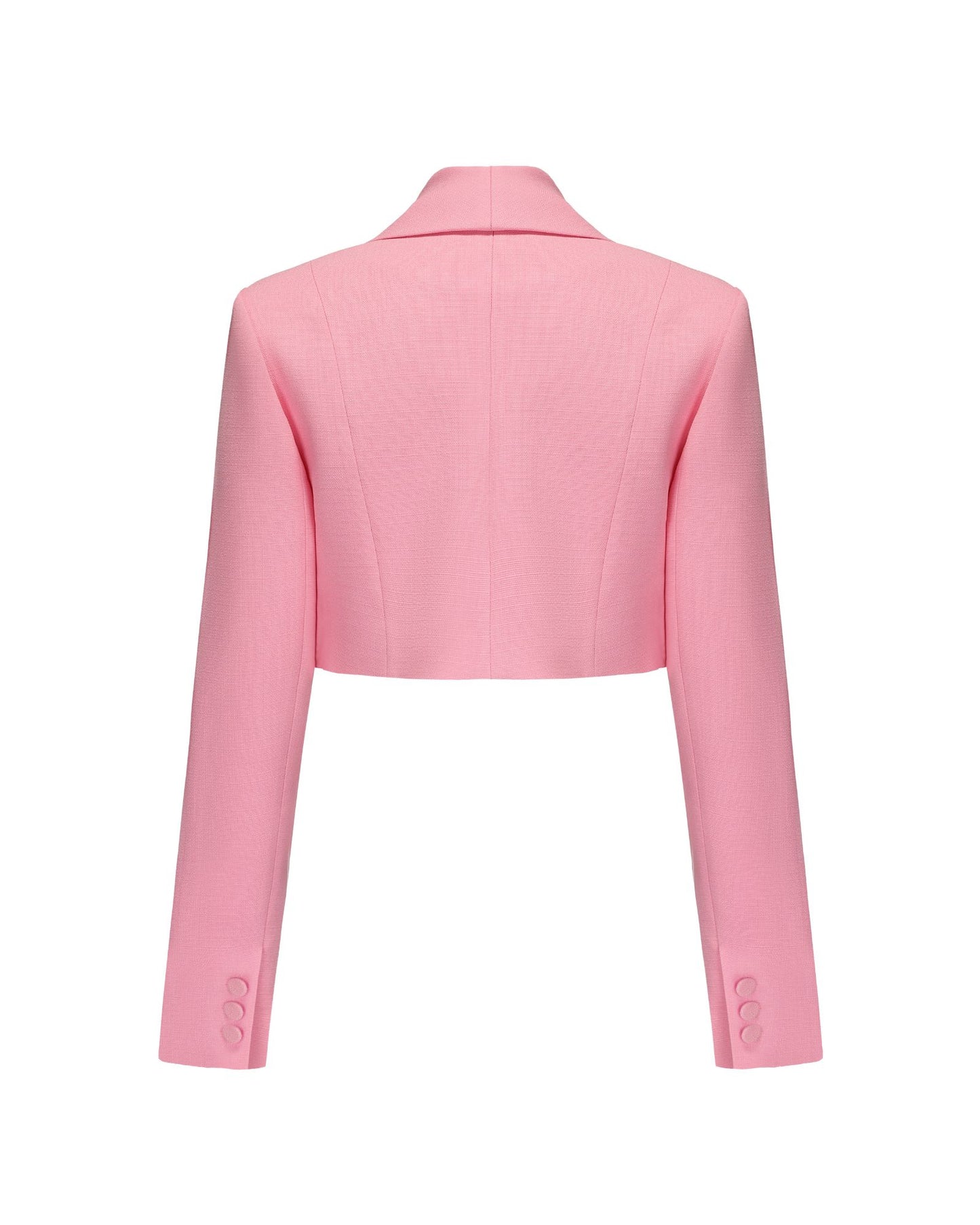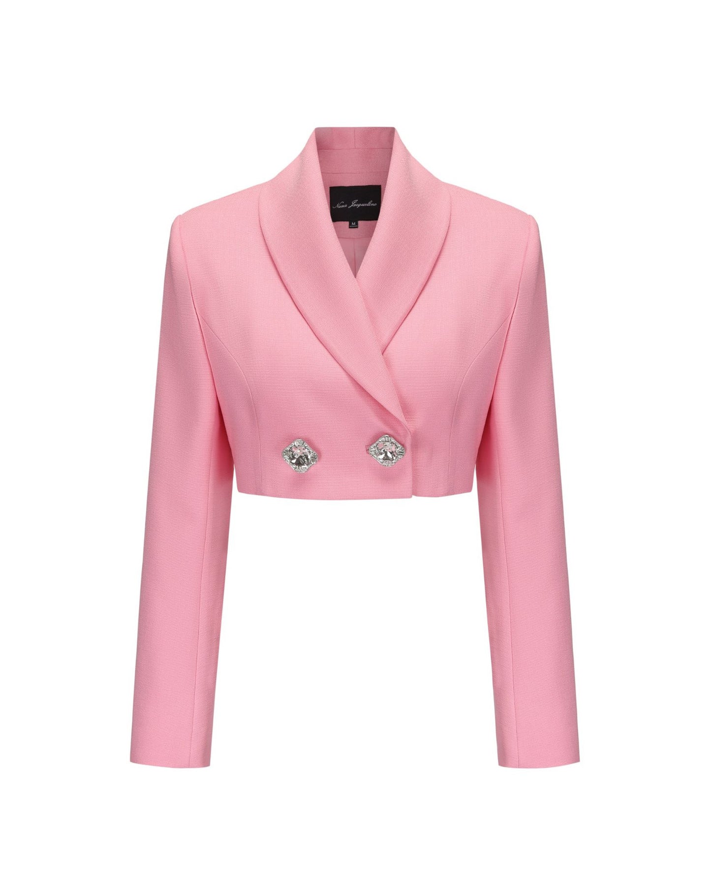 The Veronica Crop Blazer combines classic tailoring with modern fashion for a refined and feminine look. The sleek silhouette and flattering fit highlight the waist, while the elegant collar and diamond buttons add sophistication and luxury, making it perfect for both professional and social settings.