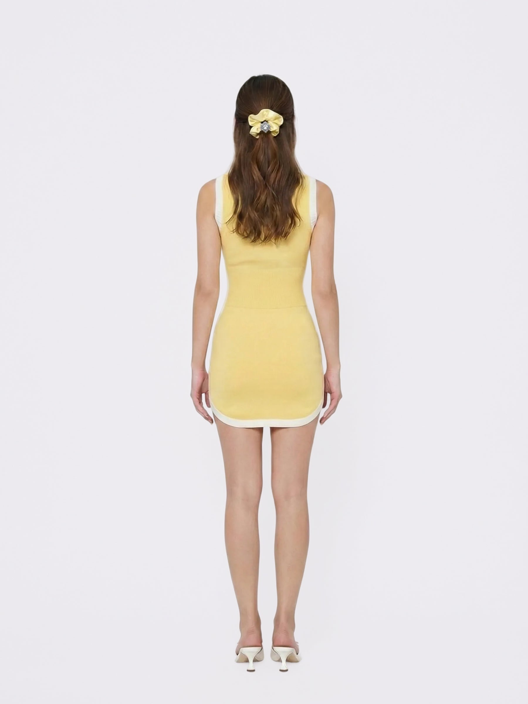 Wilhelmina Contrast-Trim Knit Yellow Mini Dress