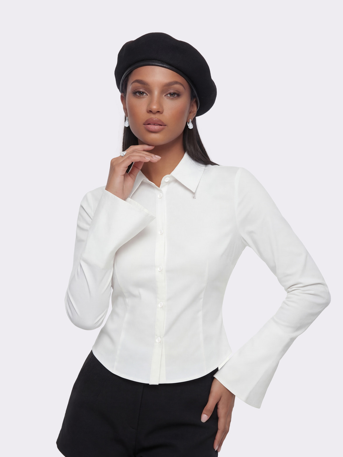 "title":"Chantal Bell-Sleeve White Shirt",