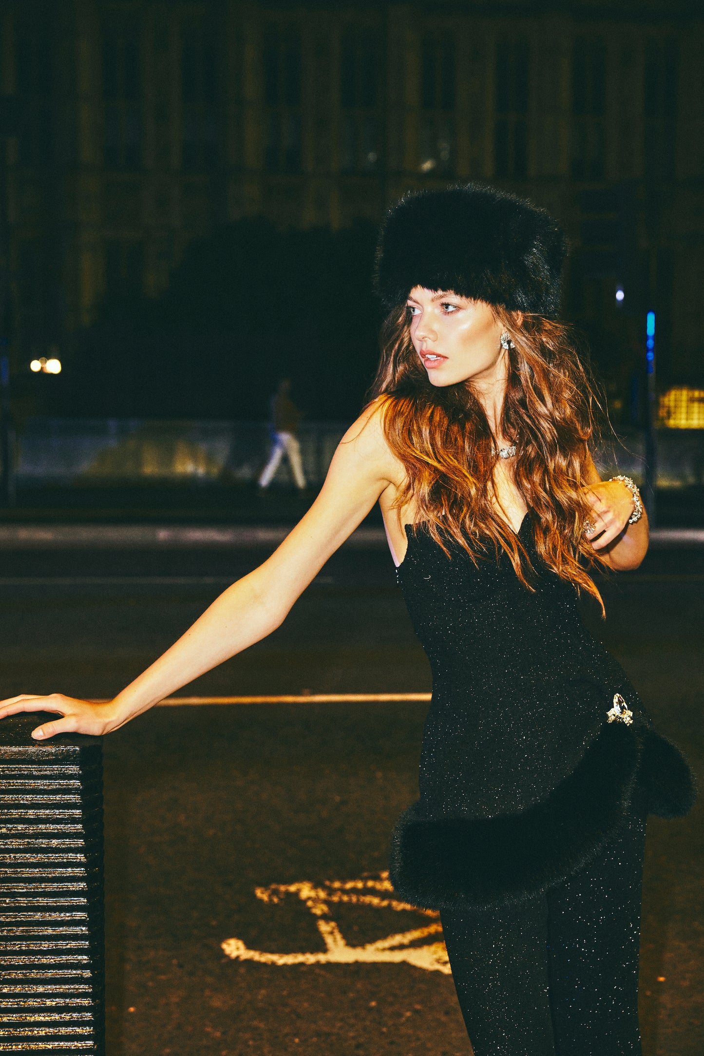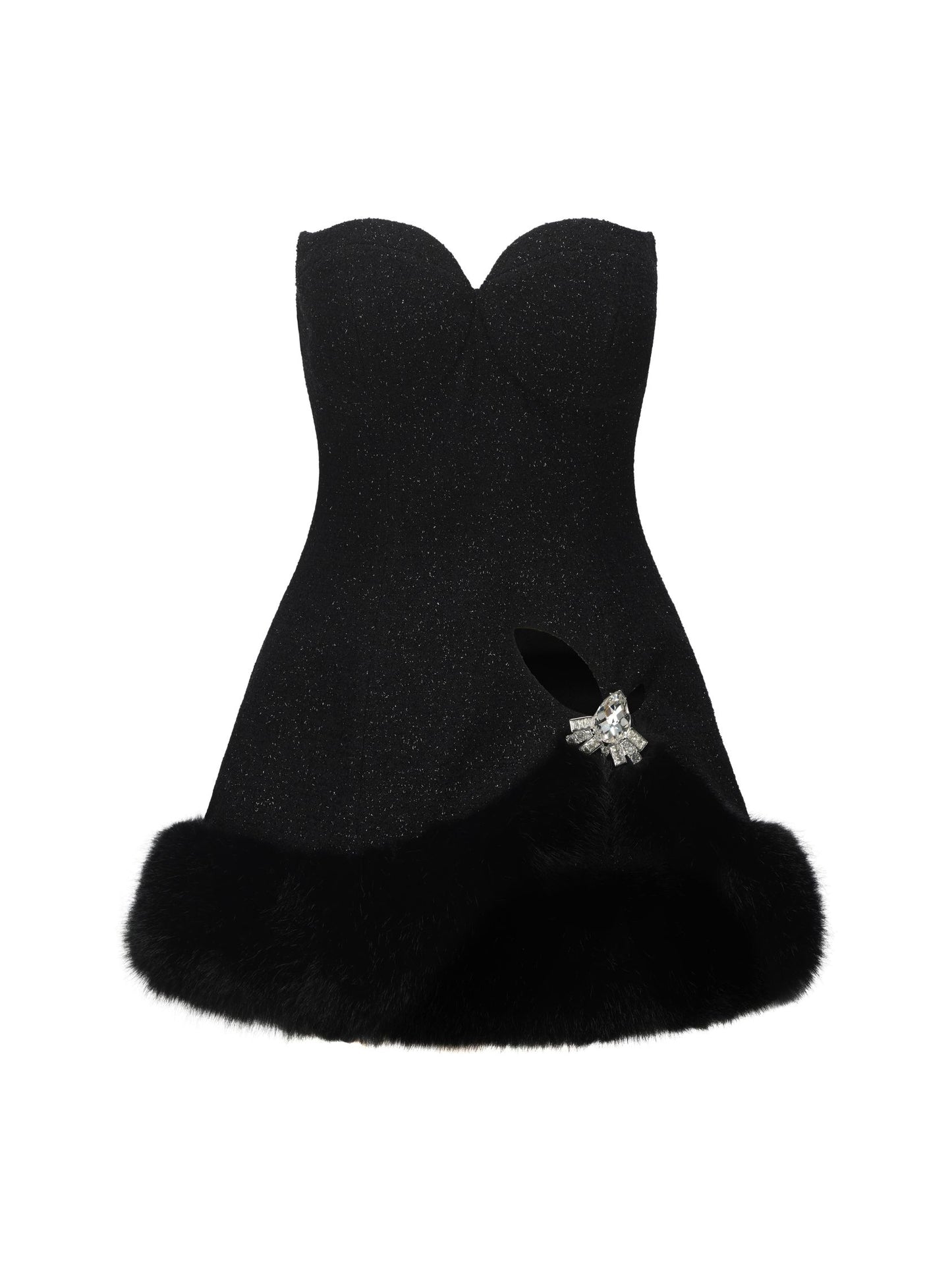 A fur dress designed for festive gatherings. The Alexandra Fur Dress is full of personality and elegance with its tube top design and shiny silk. Its fit is oversized and anti-structural to give it a full body moment. The diamond buckle and fur lining make it a perfect piece for an unforgettable winter night.