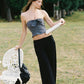 Neckline: Strapless bow top with anti-slip tape and inner grip for secure wear.