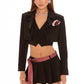 The Bridget Suit Jacket blends modern tailoring with soft femininity. Cut in a structured short blazer silhouette, this piece features satin lapels, a smooth finish, and a two piece suit inspired design that elongates the waistline and defines your shape. Polished yet playful, it brings a touch of collegiate charm to every outfit.