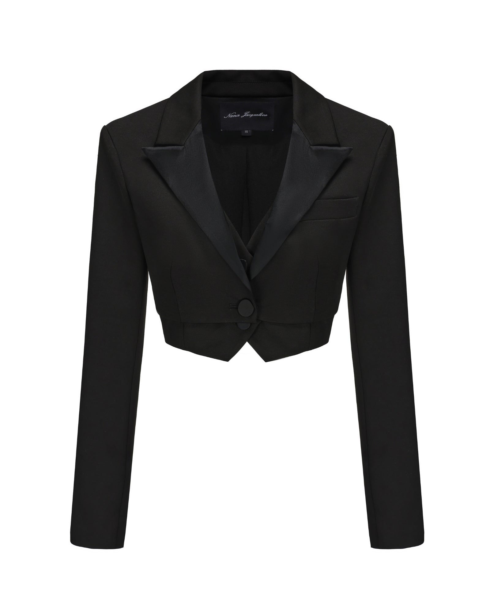 Fit: Cropped blazer jacket with a tailored waist to enhance body proportions.