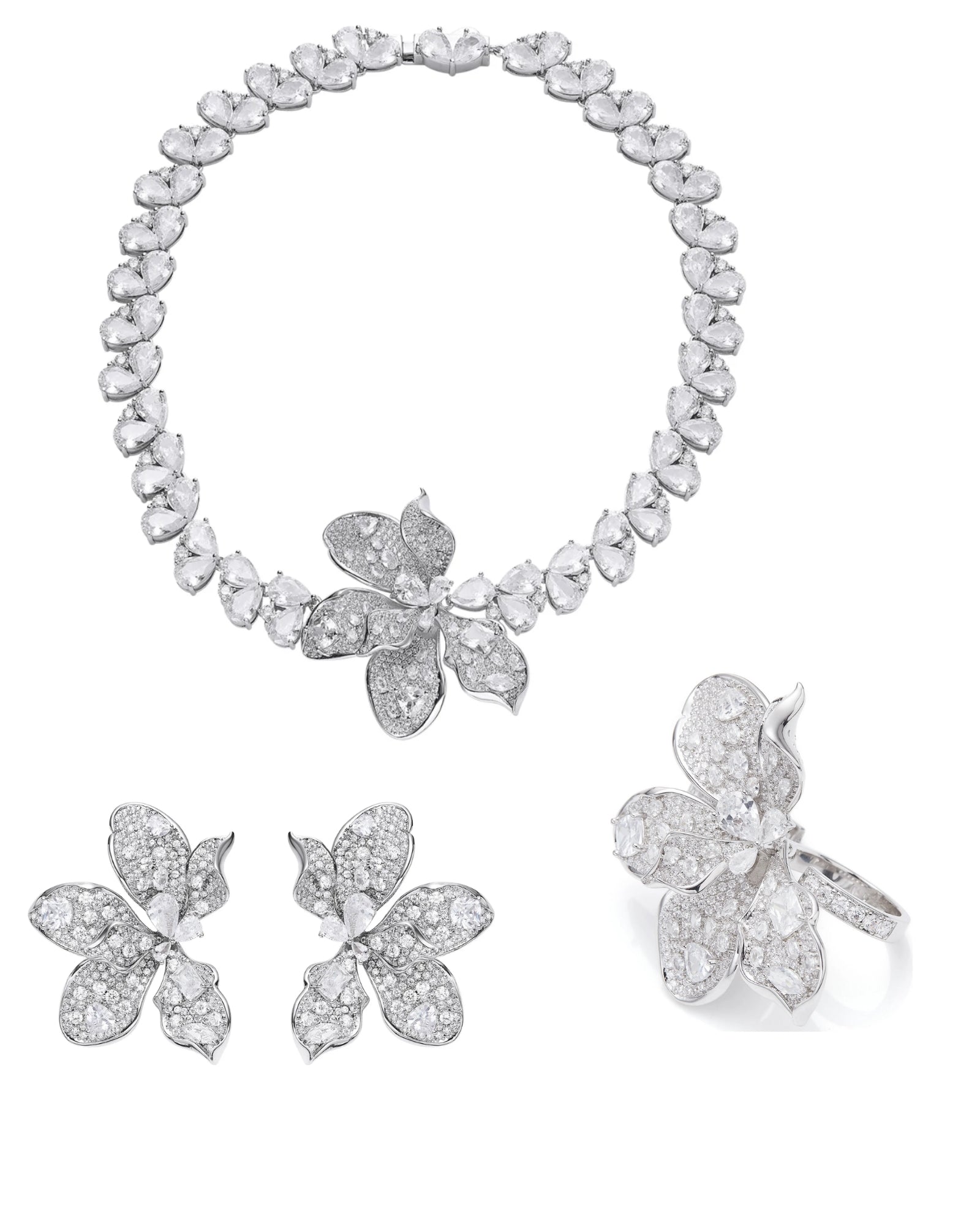 Unveil the mystery and magic of the night with The Midnight Garden Set—a dreamy trio inspired by the moonlit bloom of the rare Merlin flower. Each piece is crafted to echo the beauty of a hidden garden that comes alive under starlight, where silver petals shimmer and ancient secrets stir in the breeze.