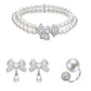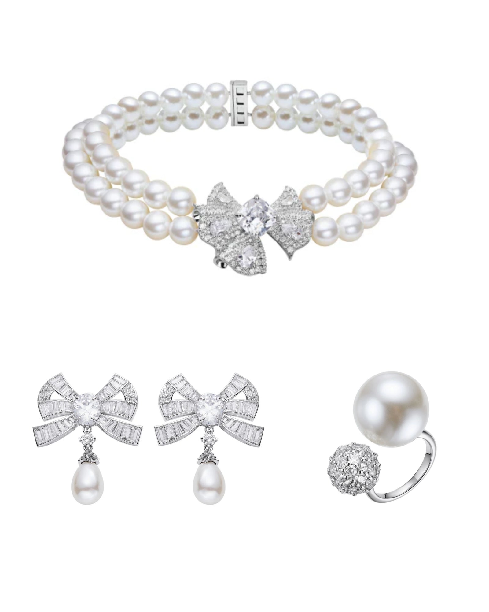 Celebrate timeless elegance and femininity with The Pearl & Diamonds Set, a captivating collection that combines the brilliance of sparkling diamonds, radiant pearls, and intricate zircon detailing. This set features: