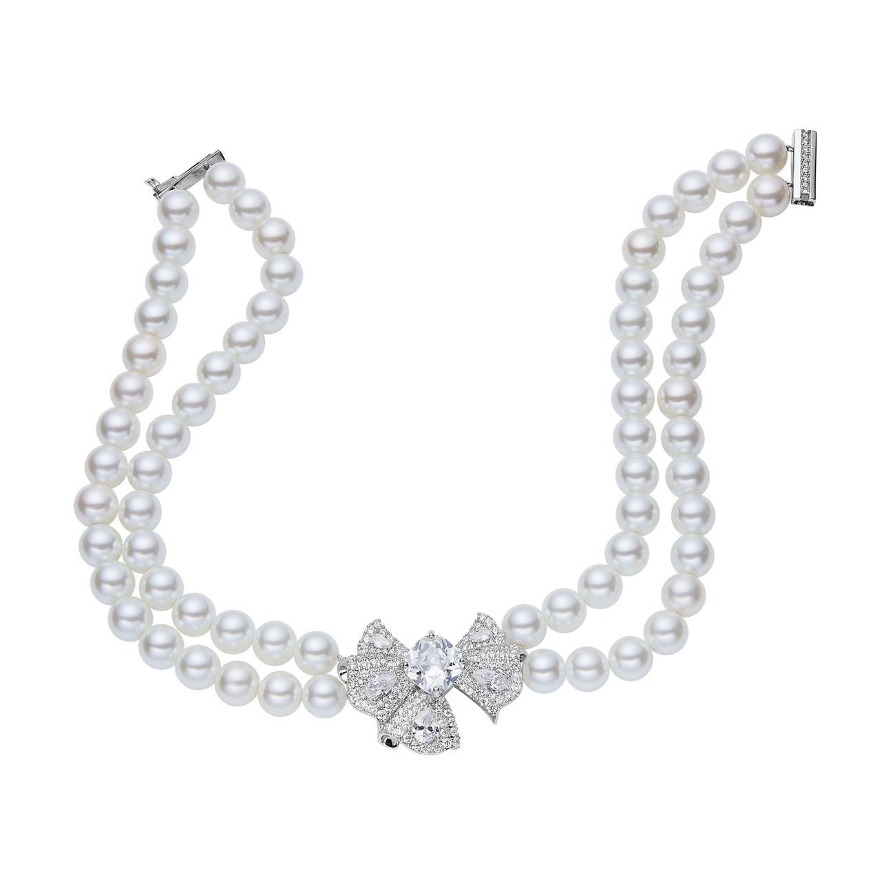 Juliet Pearl Necklace: A heart-shaped zircon centerpiece surrounded by step pearls and diamonds, with fluttering zircons mimicking the delicate motion of a skirt.