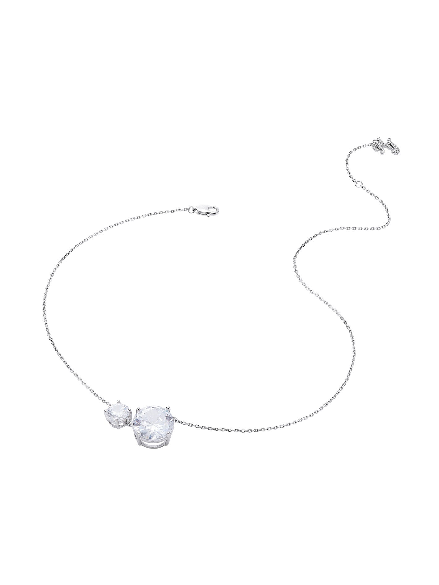 The Nadine Necklace – a minimalist clavicle chain featuring two radiant zircons and delicate diamonds, resting gracefully along the collarbone.
